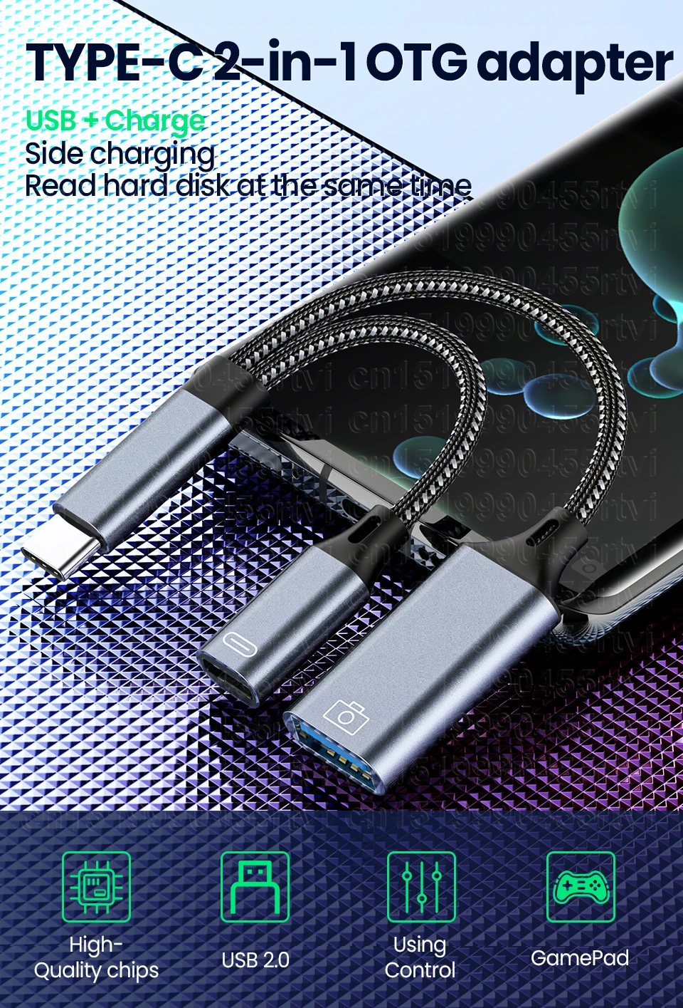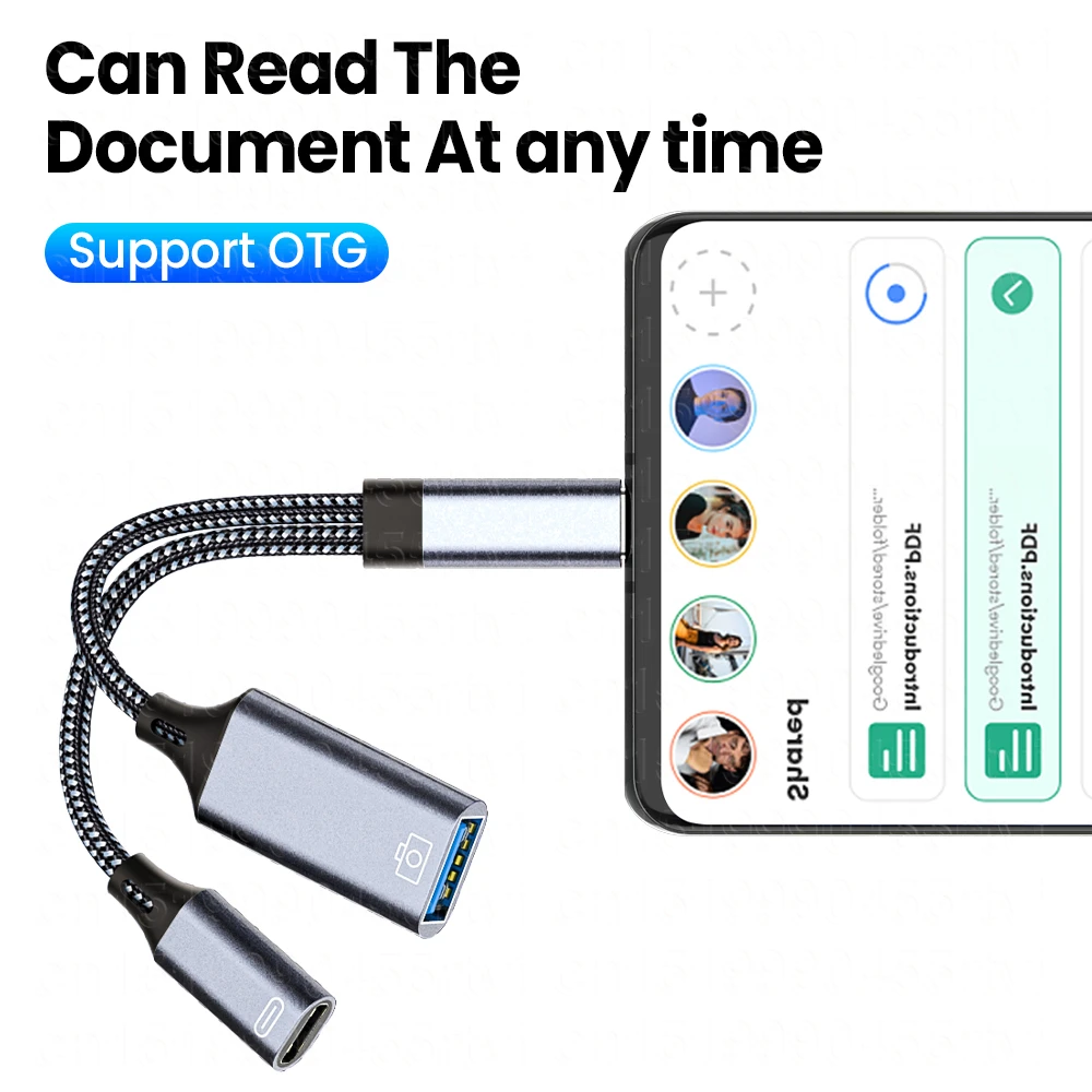 Comprar Adaptador OTG tipo C 2 en 1, convertidor USB C A tipo C/USB A con puerto de carga PD para Samsung, Huawei, teléfono, portátil, tableta, lector de tarjetas
