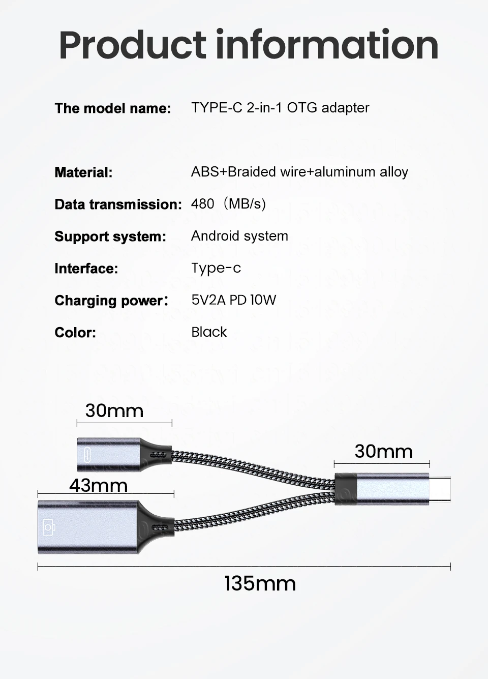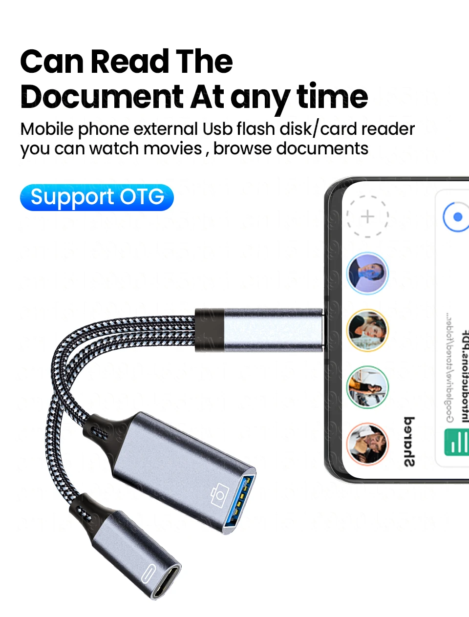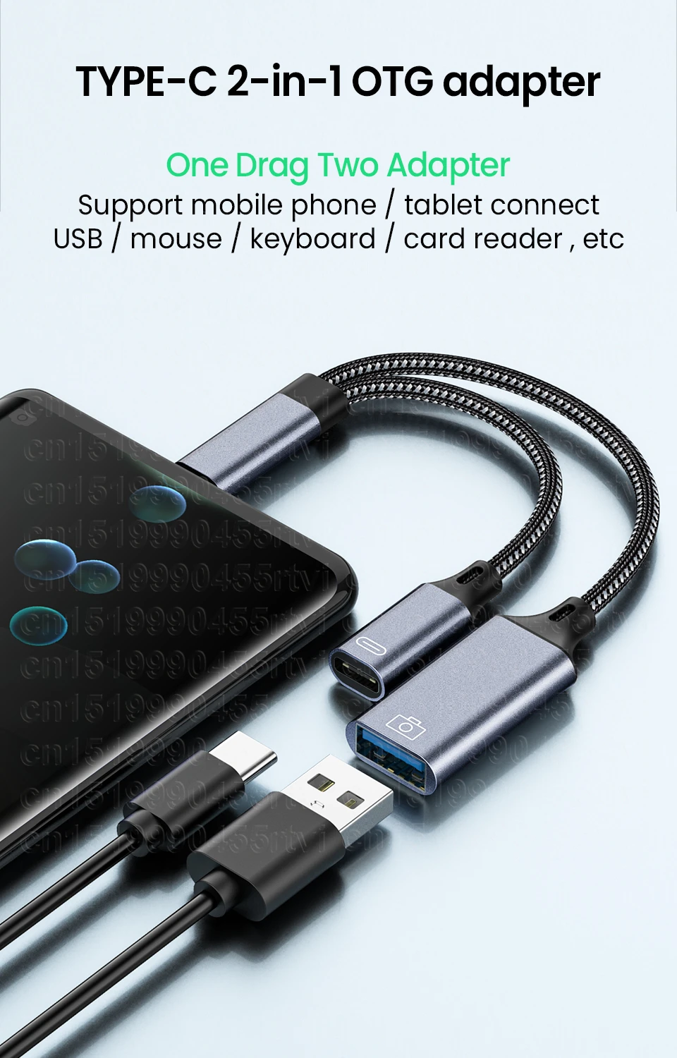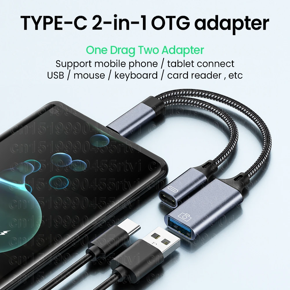 Adaptador OTG tipo C 2 en 1, convertidor USB C A tipo C/USB A con puerto de carga PD para Samsung, Huawei, teléfono, portátil, tableta, lector de tarjetas