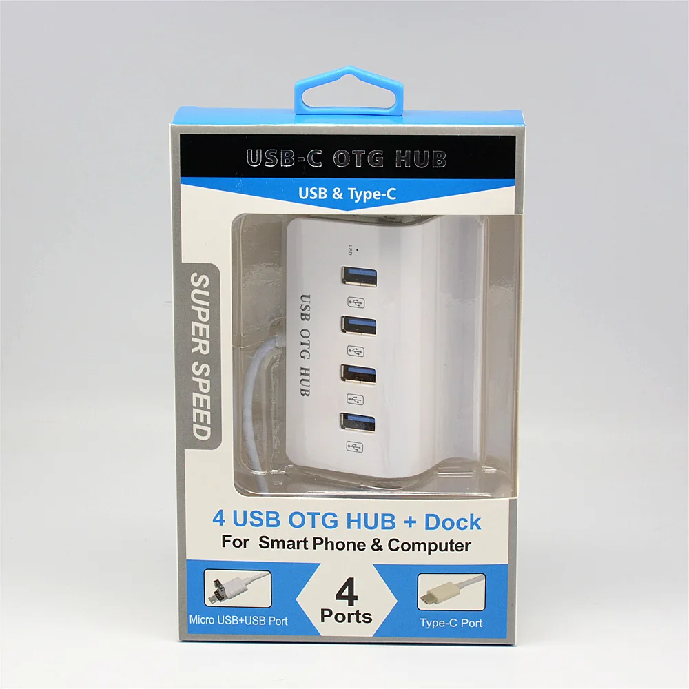 Nombre del producto: USB 3,1 tipo C OTG HUB + soporte para teléfono móvil Modelo del producto: T-506 Color del producto: blanco Tipo de interfaz: la interfaz USB 3,1 tipo C es enchufable Tamaño del producto: longitud 8,5 cm, ancho 6,5 cm, grosor 2,5 cm Aspecto del producto: creatividad clásica con función de soporte de base de teléfono móvil Material del producto: nuevo material ABS, pintura de piano en la superficie Embalaje del producto: exquisita caja de papel + bandeja interior de blíster. Tamaño del paquete: 17,5x11,5x3,2 CM Peso del producto: producto único: 0,10 KG peso bruto NG: 20KG peso neto GW: 21KG Tamaño de la Caja: 59cm * 36cm * 36cm 100 piezas Función del producto: conecta simultáneamente dispositivos USB como ratón, teclado, disco U, lector de tarjetas, impresora, mando, etc.