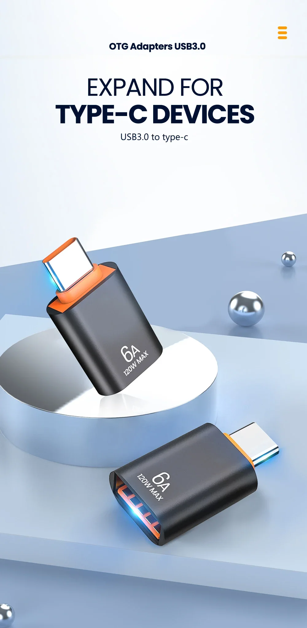 Nombre del producto: Adaptador hembra USB a tipo C 6A