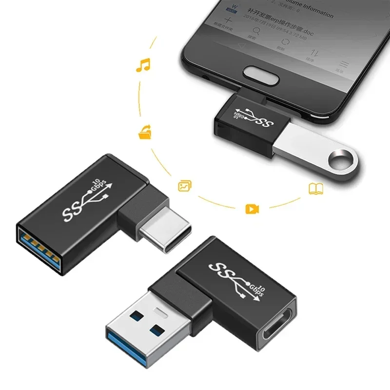Comprar Adaptador OTG USB 3,1 tipo C hembra a USB 3,0 macho, convertidor de 10Gbps tipo C a USB 3,0, 90 grados de ángulo para conector USB C OTG
