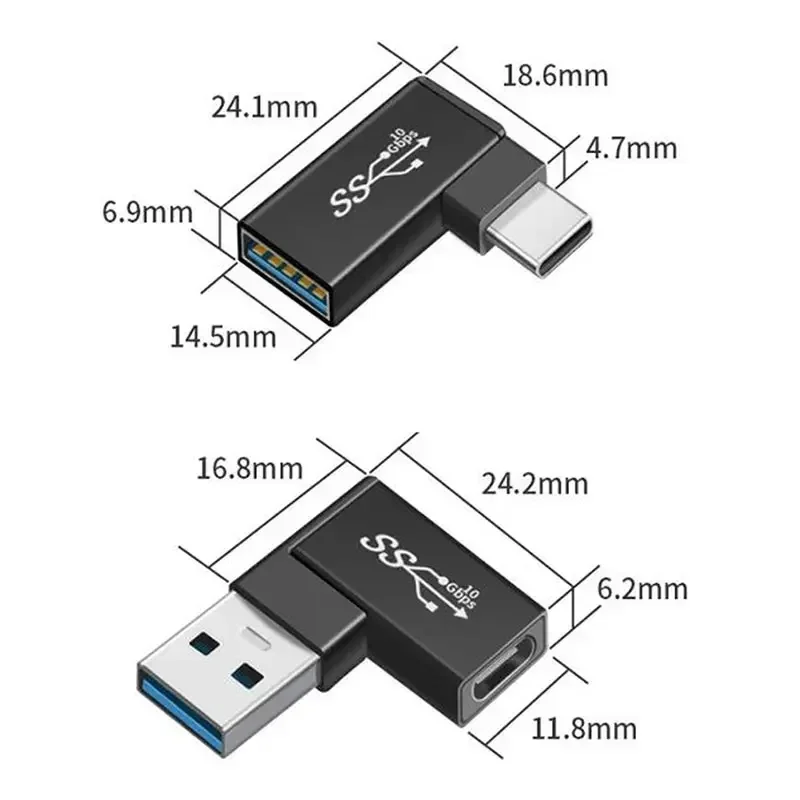 -- Puertos de conector de ángulo de 90 grados: USB3.1 C tipo (hembra) a USB 3,0 (macho), tipo C USB3.0 (hembra) a tipo C (macho), USB3.0 (hembra) a USB3. 0 (macho), el adaptador puede extender el cable tipo C.