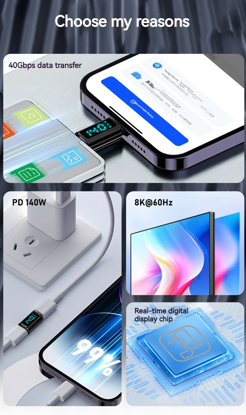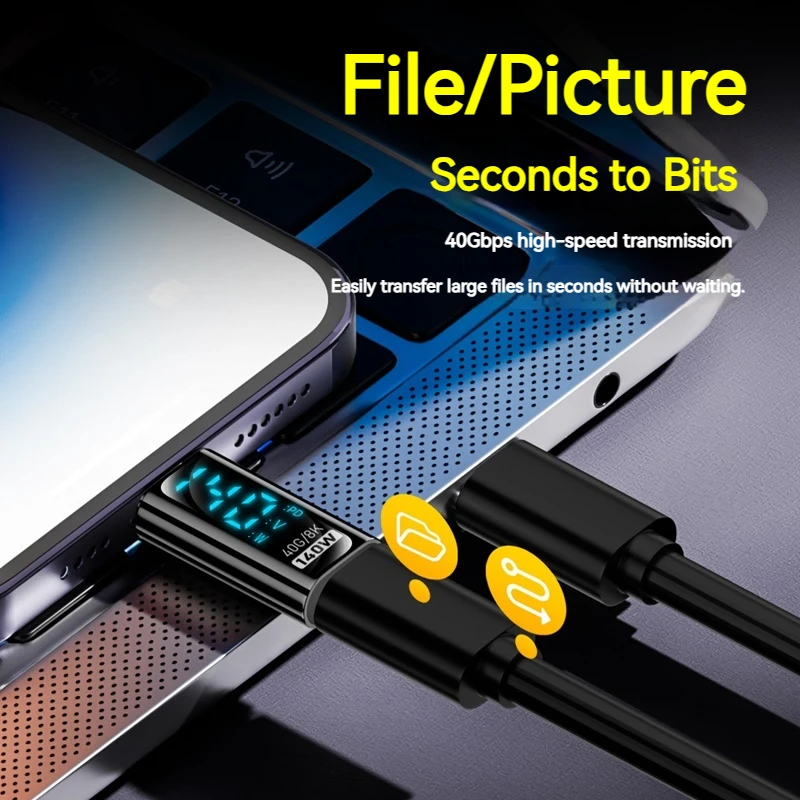 Adaptador OTG tipo C USB con pantalla Digital de 140 W, 40 Gbps, transferencia de datos Vedio USB-C de 8K, convertidor de carga rápida para Macbook, teléfono y portátil