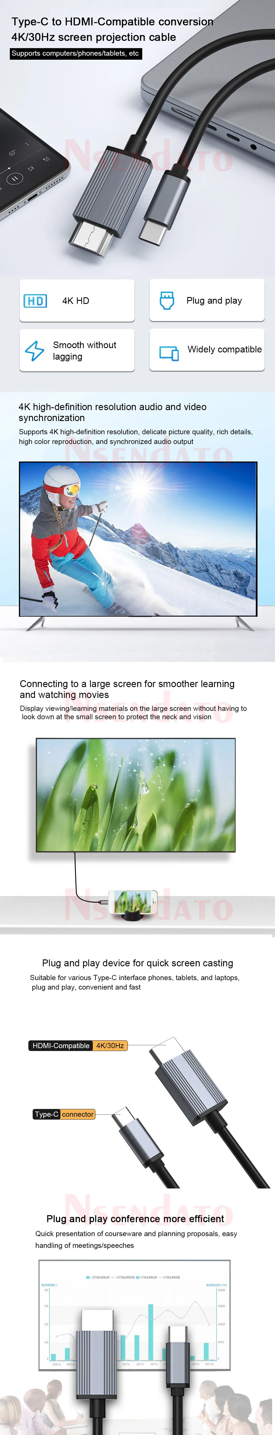 Característica: Adaptador de televisión de alta definición a HDTV: proyecte el contenido de su dispositivo en una pantalla más grande para verlo en formato de alta definición. Resolución de imagen: hasta 4K @ 30Hz(3840X2160HD) Trabajar con: teléfono móvil y cuaderno/compatible con MacBook Especificación: Modelo: L17 Material: aleación de aluminio Longitud del cable: 2M Paquete Palo TV Manual