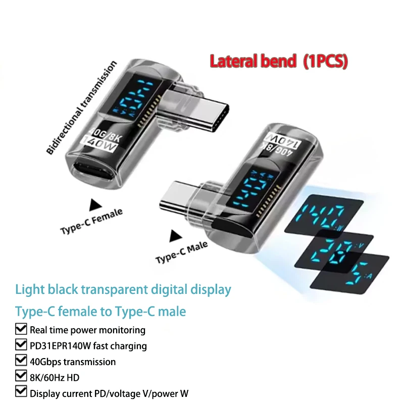 Adaptador de pantalla Digital USB C a USB C en forma de U, adaptador de extensión tipo C macho a C hembra de 140 W, carga rápida, transferencia de datos de 40 Gbps