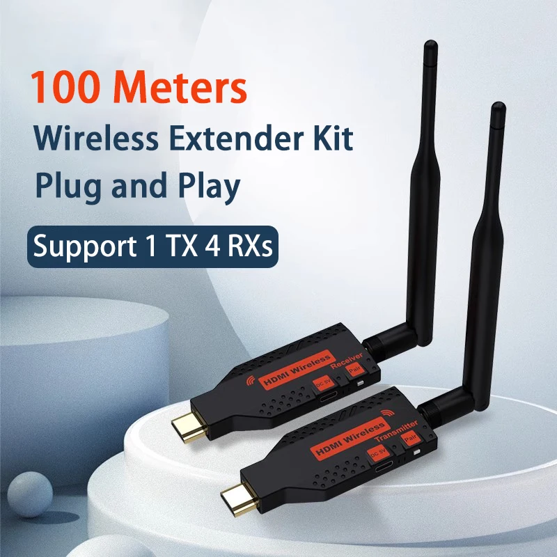 Comprar Adaptador de pantalla inalámbrica de 100m, transmisor y receptor de Audio y vídeo, extensor HDMI, compartir para cámara, portátil, PC, TV, Monitor, proyector