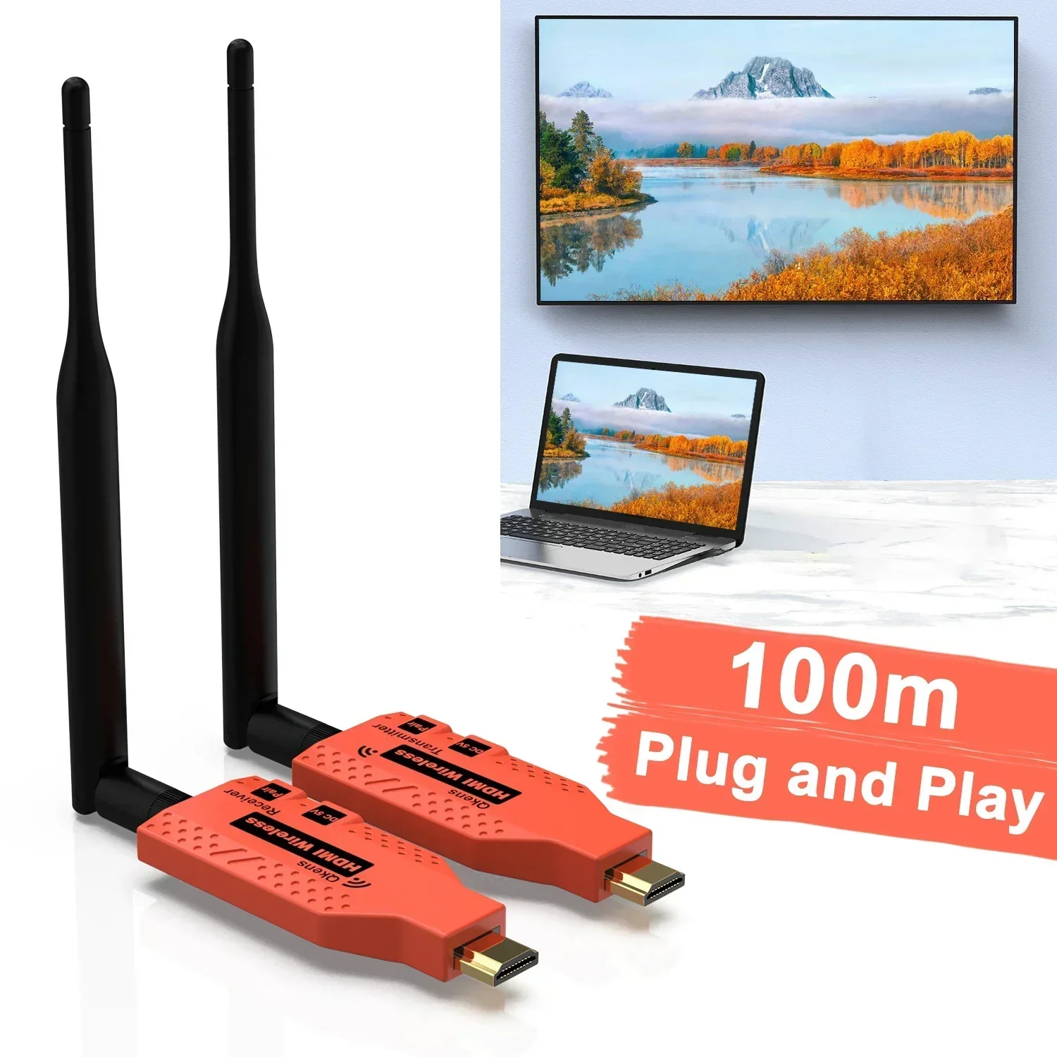 Comprar Adaptador de pantalla inalámbrica de 100m, transmisor y receptor de Audio y vídeo, extensor HDMI, compartir para cámara, portátil, PC, TV, Monitor, proyector