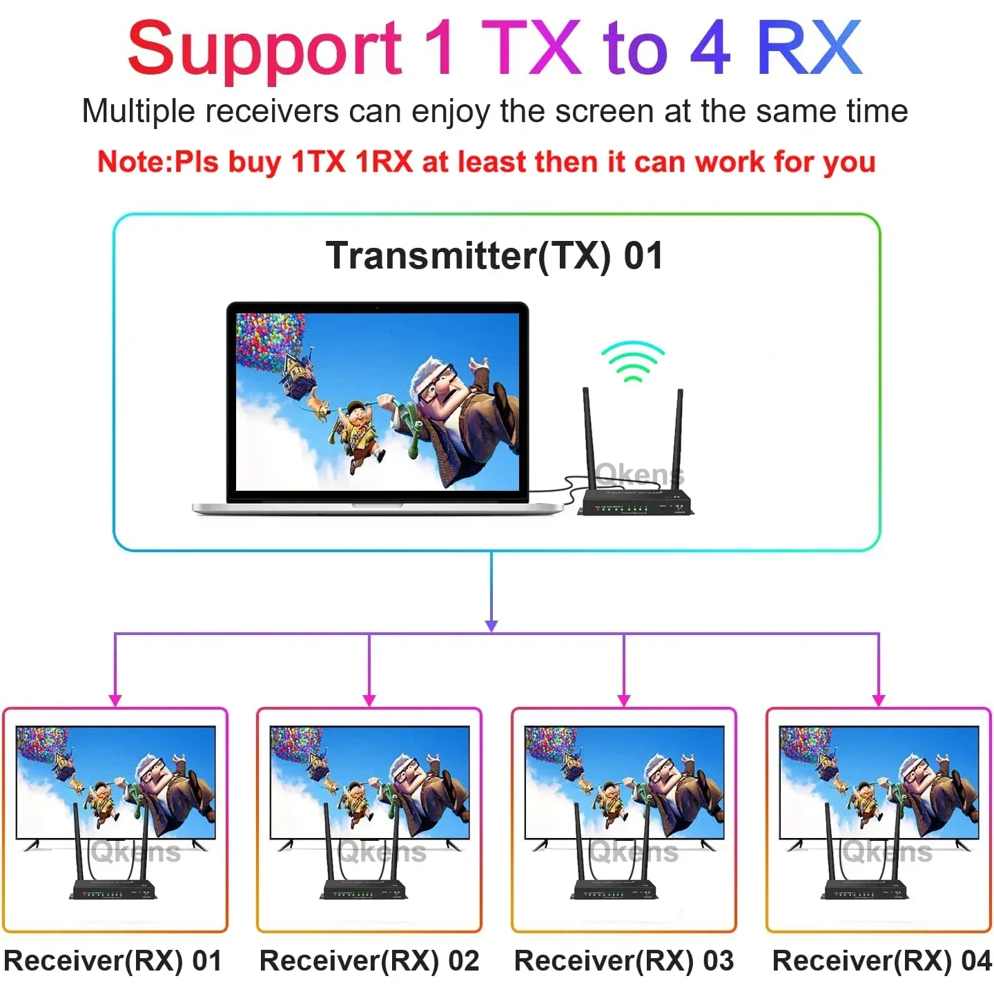 Comprar Adaptador de pantalla inalámbrica 4K 100m USB KVM extensor HDMI 1 a 4 transmisor de Audio y vídeo receptor Fr cámara portátil PC a Monitor de TV