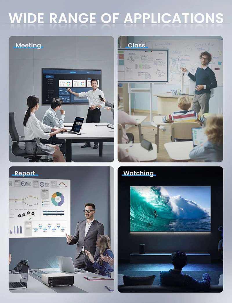 Se utiliza ampliamente para videoconferencias en pantalla grande/entretenimiento en el hogar/aprendizaje en línea/discursos de negocios