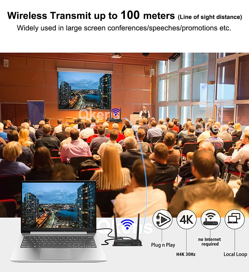 1. Transmisión de video y audio HDMI a través del protocolo de transmisión inalámbrica incorporado, sin necesidad de WiFi o internet