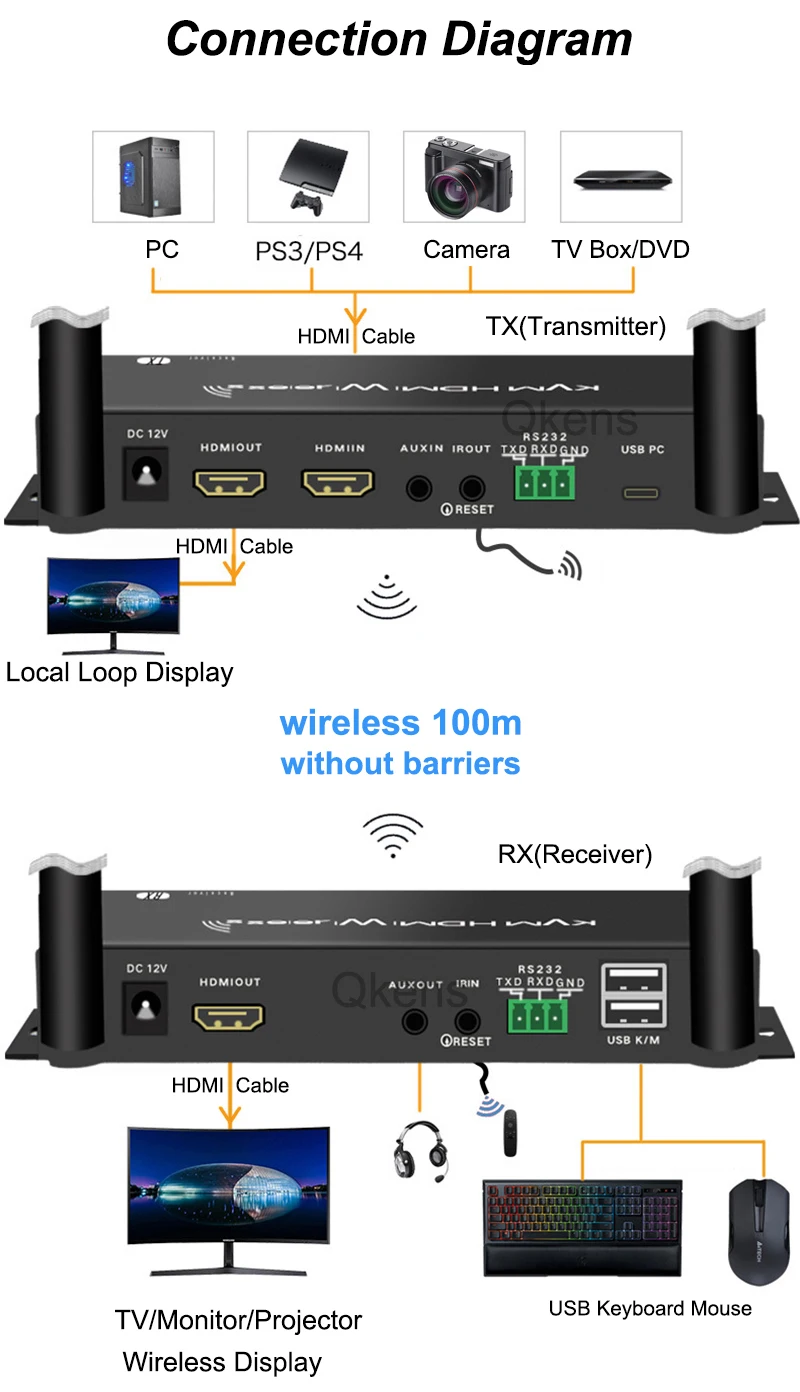Este extensor HDMI incorporado protocolo de transmisión inalámbrica, puede transmitir de forma inalámbrica señal de audio y vídeo HDMI,