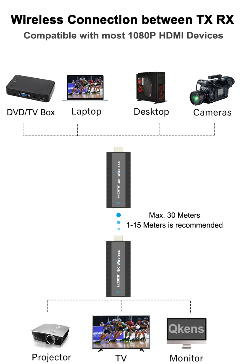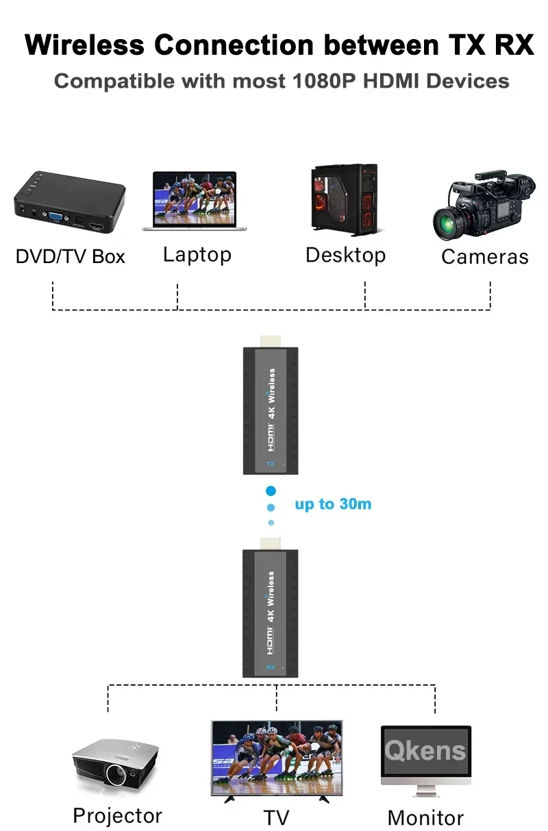 Comprar Adaptador de pantalla inalámbrico 4K 1080P, extensor HDMI, transmisor de Audio y vídeo, receptor compartido para cámara, DVD, portátil, PC a proyector de TV