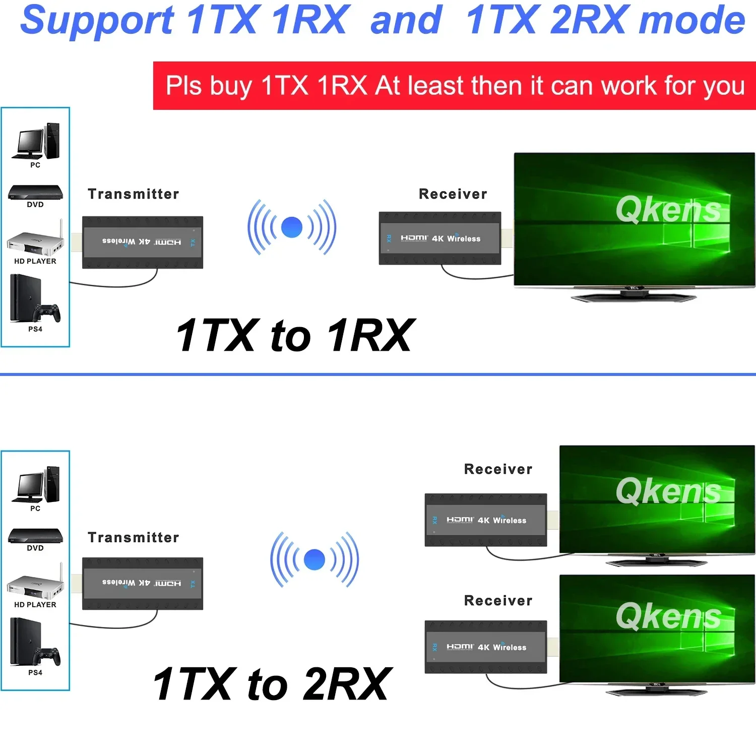 6. Si compra 1TX 1RX o 1TX 2RX, hemos emparejado bien, después de recibirlo, plug and play, muy fácil;