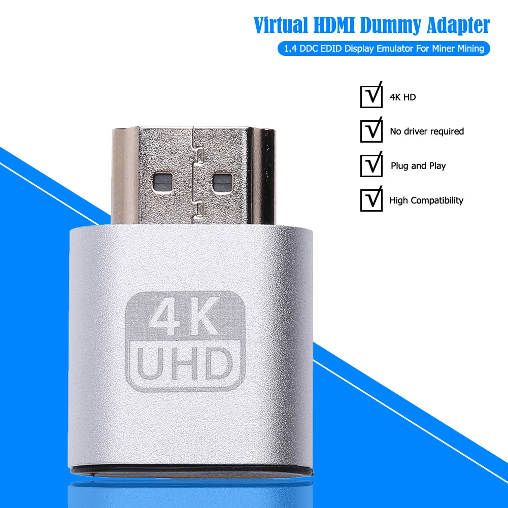 4K compatible con HDMI DDC EDID Dummy Plug Headless Ghost Display Emulator Adaptador de pantalla virtual para minería Bitcoin