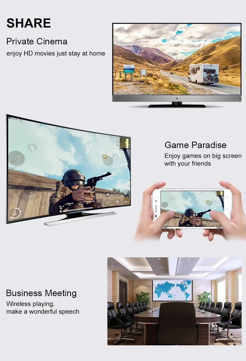 Con él, puede compartir su teléfono (video/audio/imágenes/web en línea/juego/música, etc.) a su televisor o proyector