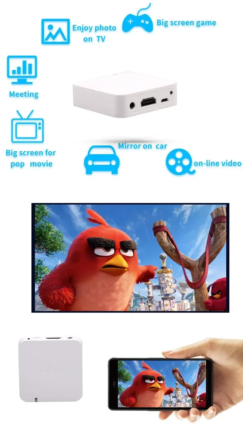 Comprar Adaptador de pantalla WiFi inalámbrico AV HDMI para coche, pantalla de Audio y vídeo compartida para IPhone, Huawei, Xiaomi, Android, teléfono a monitor de TV