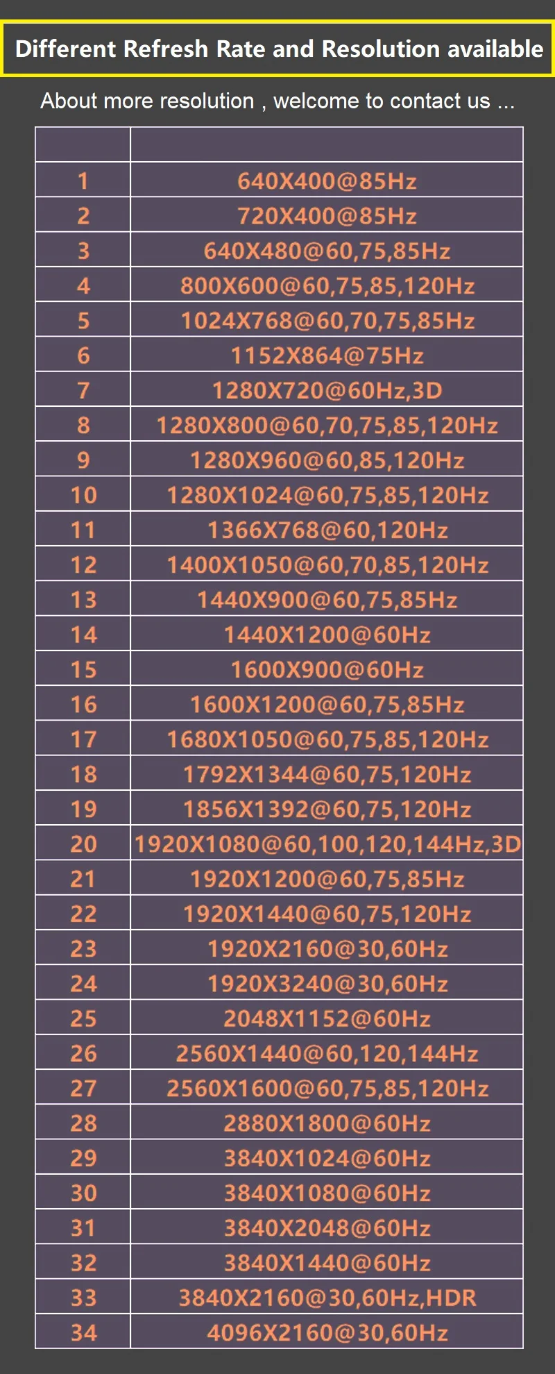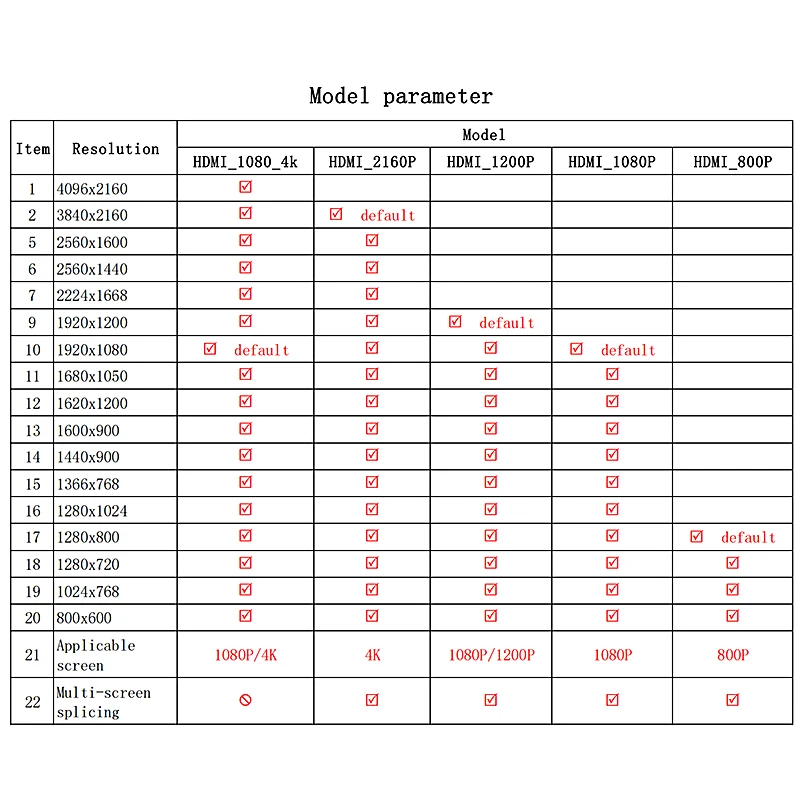 Le agradecemos realizar pedidos personalizados.Para pedidos personalizados, contáctenos directamente a través de mensajes de Aliexpress y proporcione una solicitud detallada (como la resolución en píxel y la frecuencia en herierto) para el emulador HDMI EDID.Si no puede realizar solicitudes de resolución exactas a tiempo, afectará el manejo de su pedido y perderá la fecha de envío. Tenemos que informarlo como un pedido anormal a Aliexpress y no enviaremos su paquete.