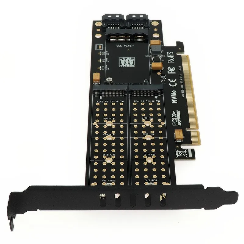 Nombre del producto: PCIE X16 a m.2 B Key NGFF SSD + m.2 M Key NVME SSD + mSATA SSD 3 en 1 Riser Card.