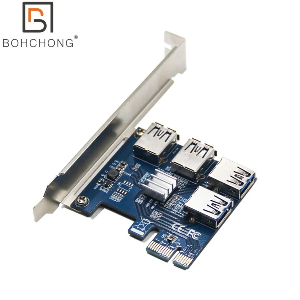 Adaptador PCI-E naar PCI-Express 1x naar 16x Mijnbouw Riser Card 1 tot 4 multiplicador USB 3.0 para BTC LTC ETH Mijnwerker