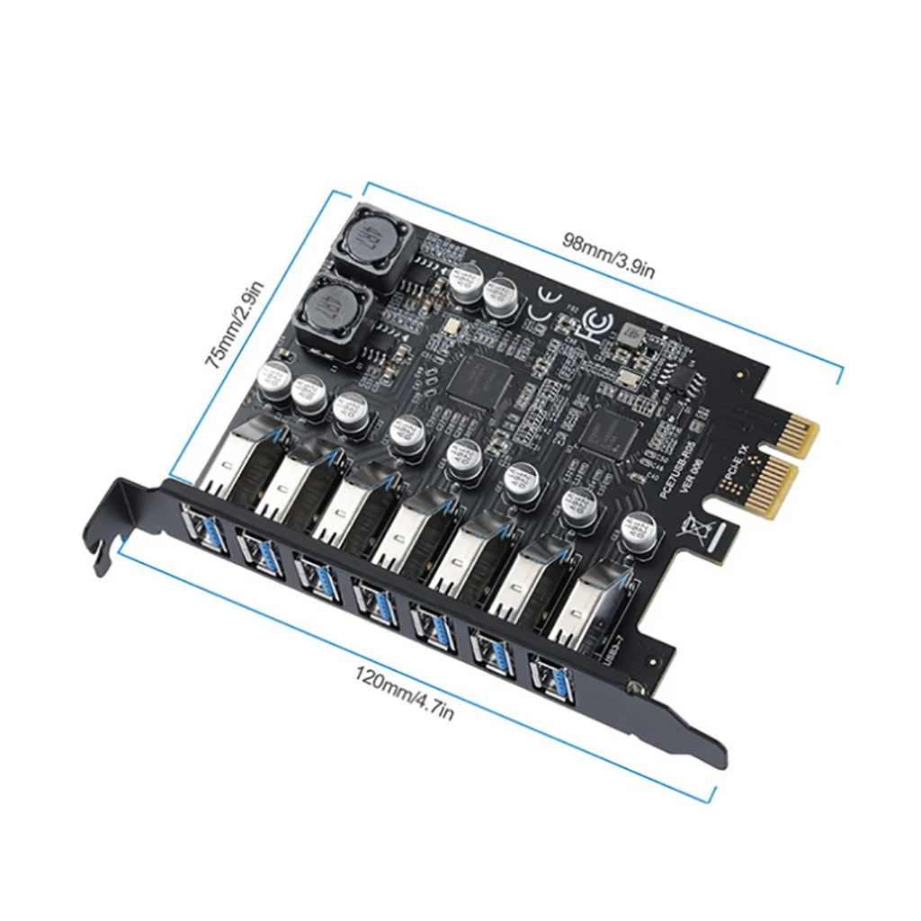 Con la popularidad del USB 3,0, esta tarjeta adaptadora se puede conectar a una placa base con una ranura PCI-E e instalar con controladores para extenderla con 7 puertos USB 3,0. Admite 7 dispositivos USB3.0 para copiar datos entre sí.