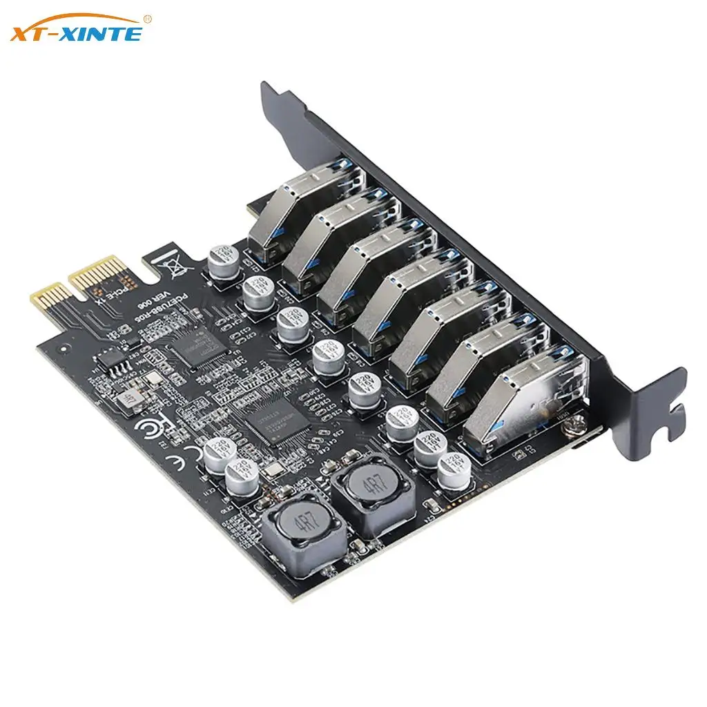 Comprar Adaptador PCI Express USB 3,0 a 7 puertos Gen 1, de 19 pines tarjeta adaptadora de expansión, convertidor de controlador PCI-e x1 5gbps para escritorio