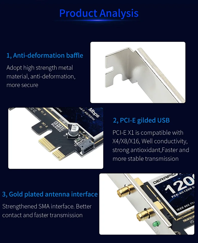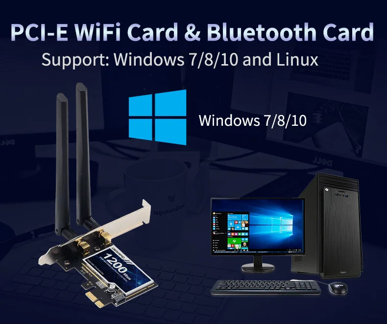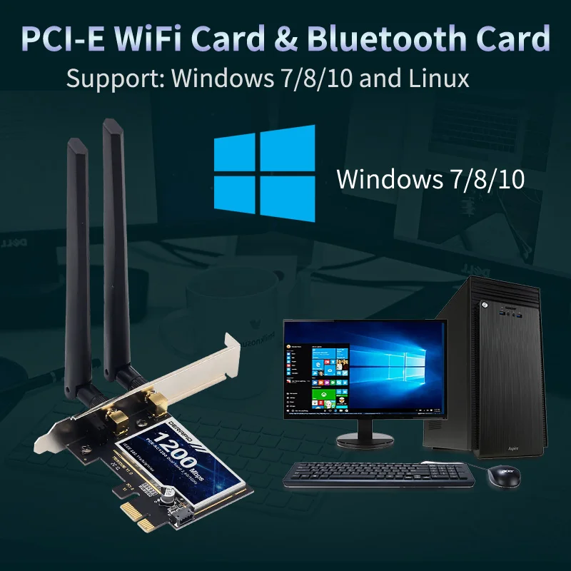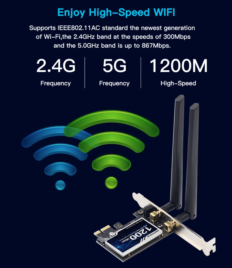 Comprar Adaptador PCI-e inalámbrico de 1200Mbps 802.11ac Bluetooth 4,0 WiFi tarjeta Wlan 2,4G/5GHz adaptador PCI Express Wifi de escritorio para Win 7 10 11