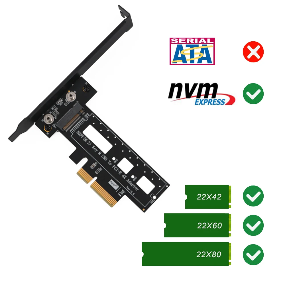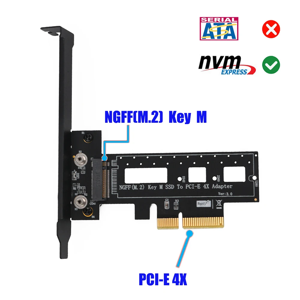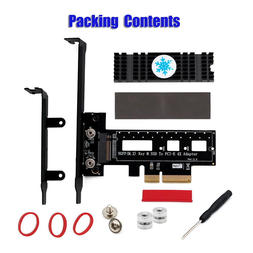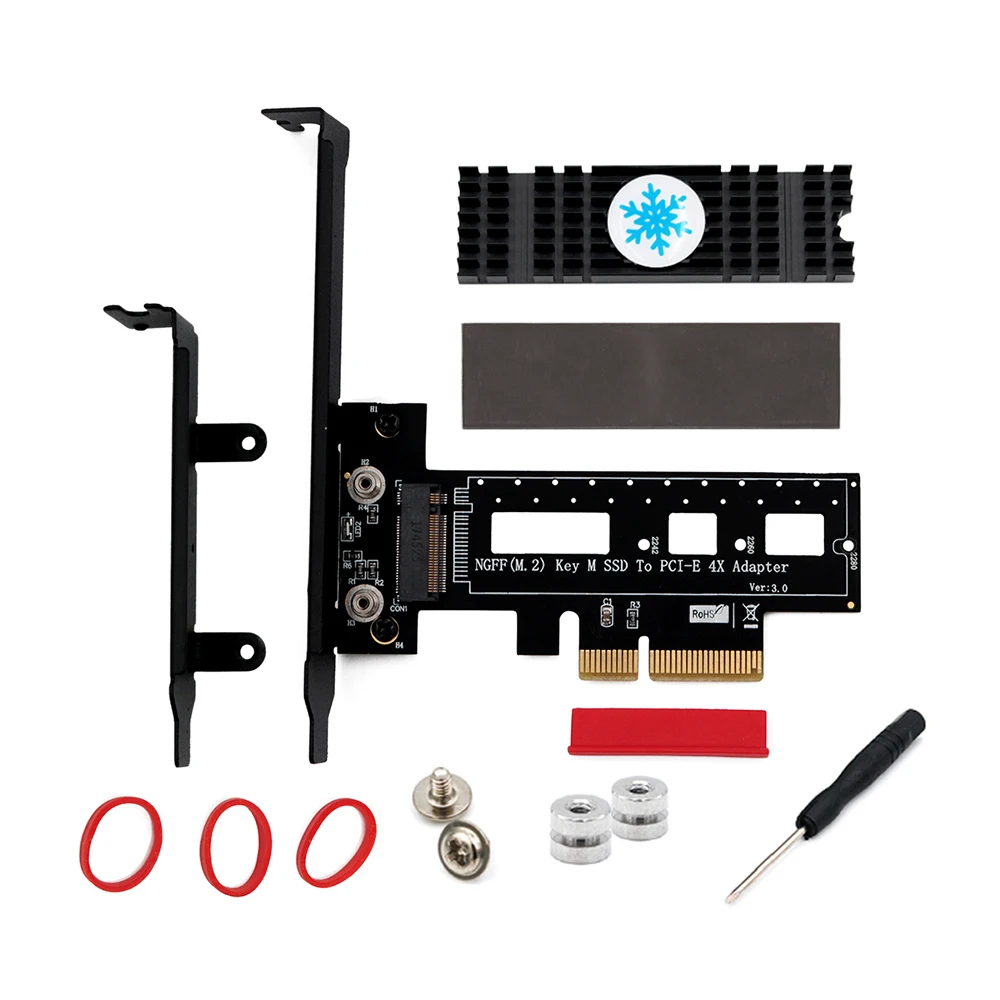 Comprar Adaptador PCIE a M2, Raiser PCI Express 3,0 X4 a M.2 NVME, SSD, clave M, PCIE M2, adaptador de tarjeta elevadora + soporte de perfil bajo, disipador térmico M.2