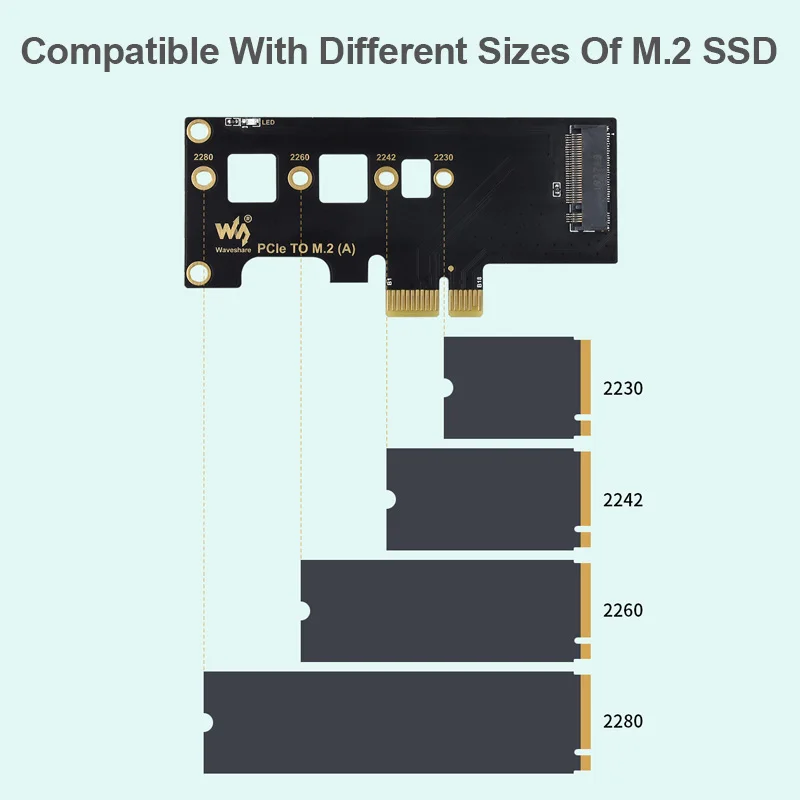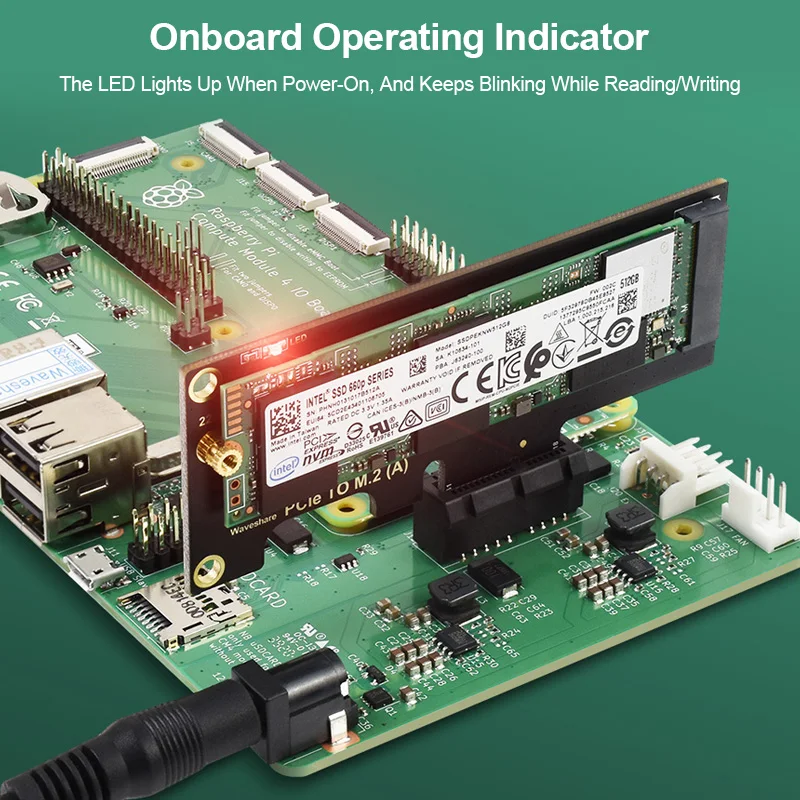 Comprar Adaptador PCIe a M.2, lectura más rápida, escritura con luz LED para Protocolo NVMe, M.2 SSD, Raspberry Pi Compute Module 4