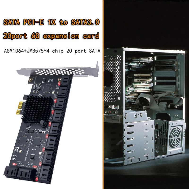 Adaptador PCIE SATA para minería, puertos de 20/16/12/6/4 SATA de 6 Gb a PCI Express, tarjeta de expansión, convertidor PCIe a SATA III para PC