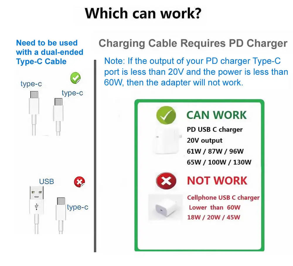 【Compatibility】L -Tip is USB C to Magnetic 1 and Magnetic 1 is used for MacBook Pro Air Types sell before Mid 2012 by For Apple;T-Tip is USB C to Magnetic 2 and is used for MacBook Types sell after Mid 2012 by For Apple;If you choose at least 65W PD Power with correct 100W C to C cable, it can charge for Macbook Pro 13-inch and For Macbook Air.If you choose 87/100W PD Power with correct C to C cable,it can charge for MacBook Pro 15-inch and 17-inch,Specific model please refer to the Product description .
