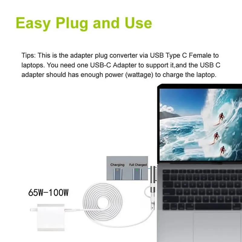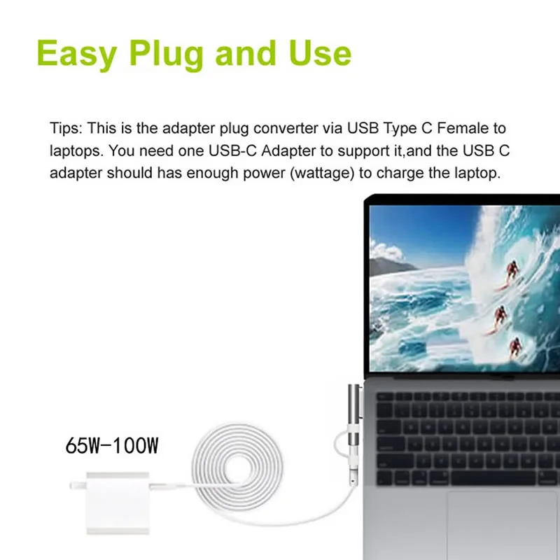 【USB C PD Fast Charging】This USB-C to Magnetic 2 T- Tip adapter technology can provide faster charging speed for MacBook Air Pro After Mid 2012 Models.You also need to prepare a USB C to USB C 5A 100W cable and a C-port PD power supply above 20V 65W,so that they can be combined replace the original power supply and make your For Macbook work normally.