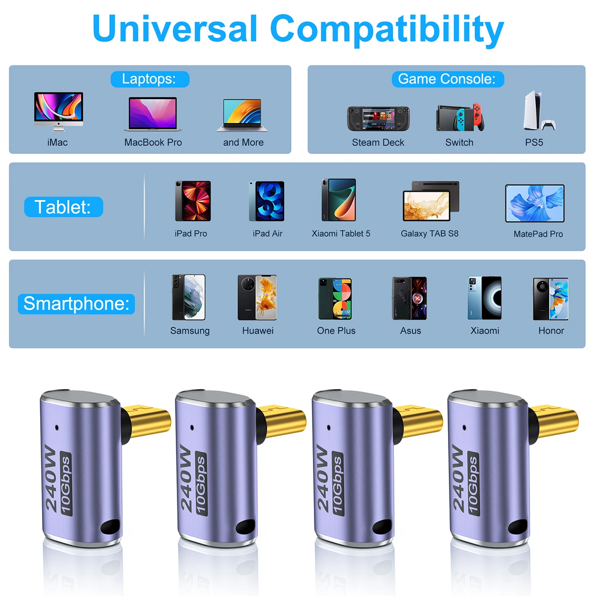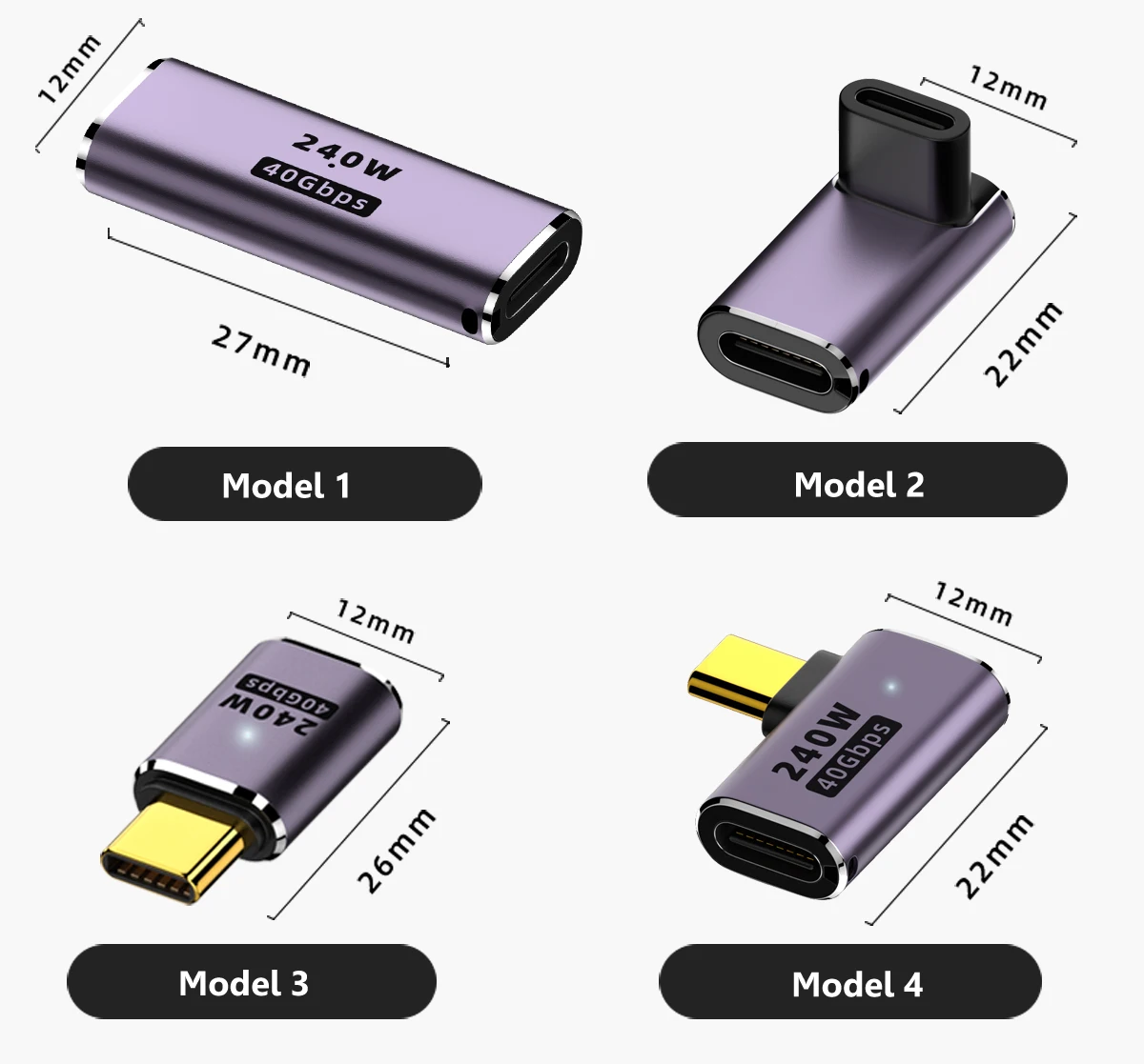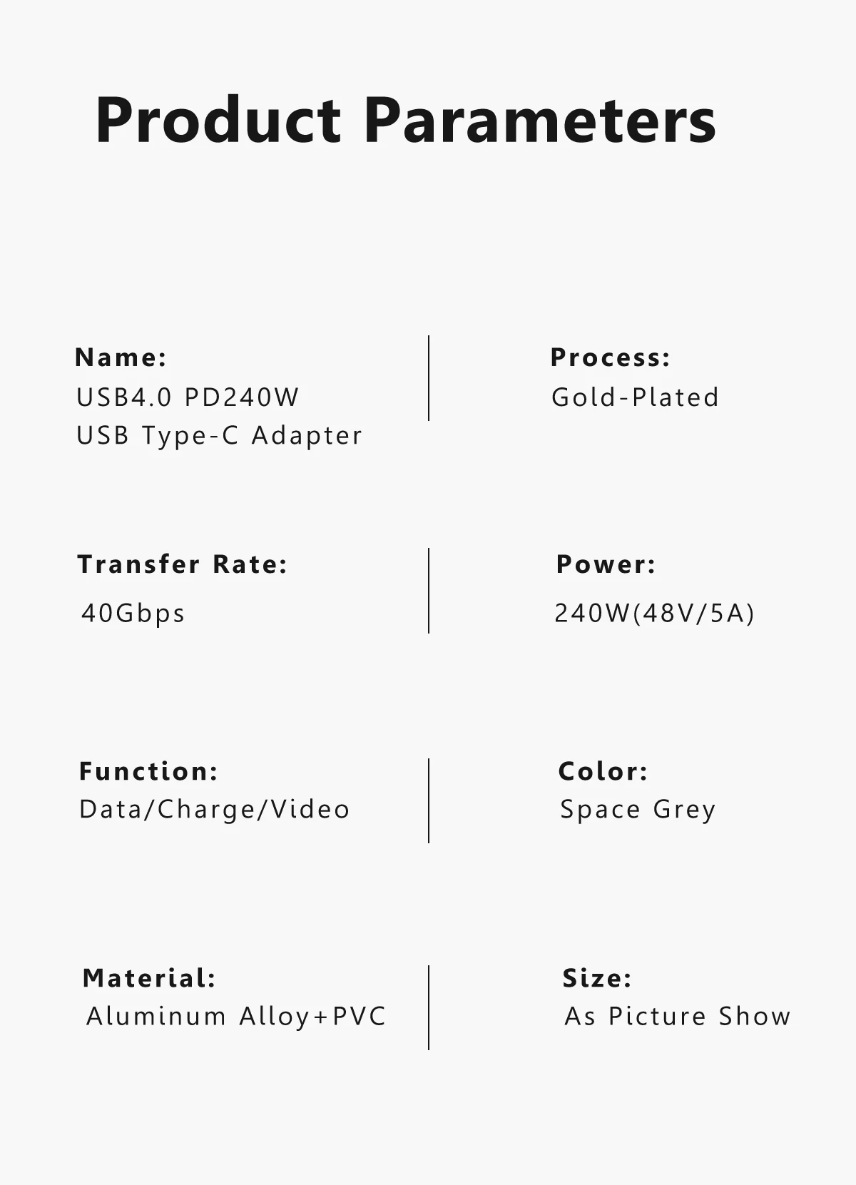 Comprar Adaptador PD240W USB4.0 40gbps Thunderbolt3 OTG 8K @ 60Hz USB C a tipo C 48V @ 5A adaptador de datos convertidor de carga rápida para PC y tableta