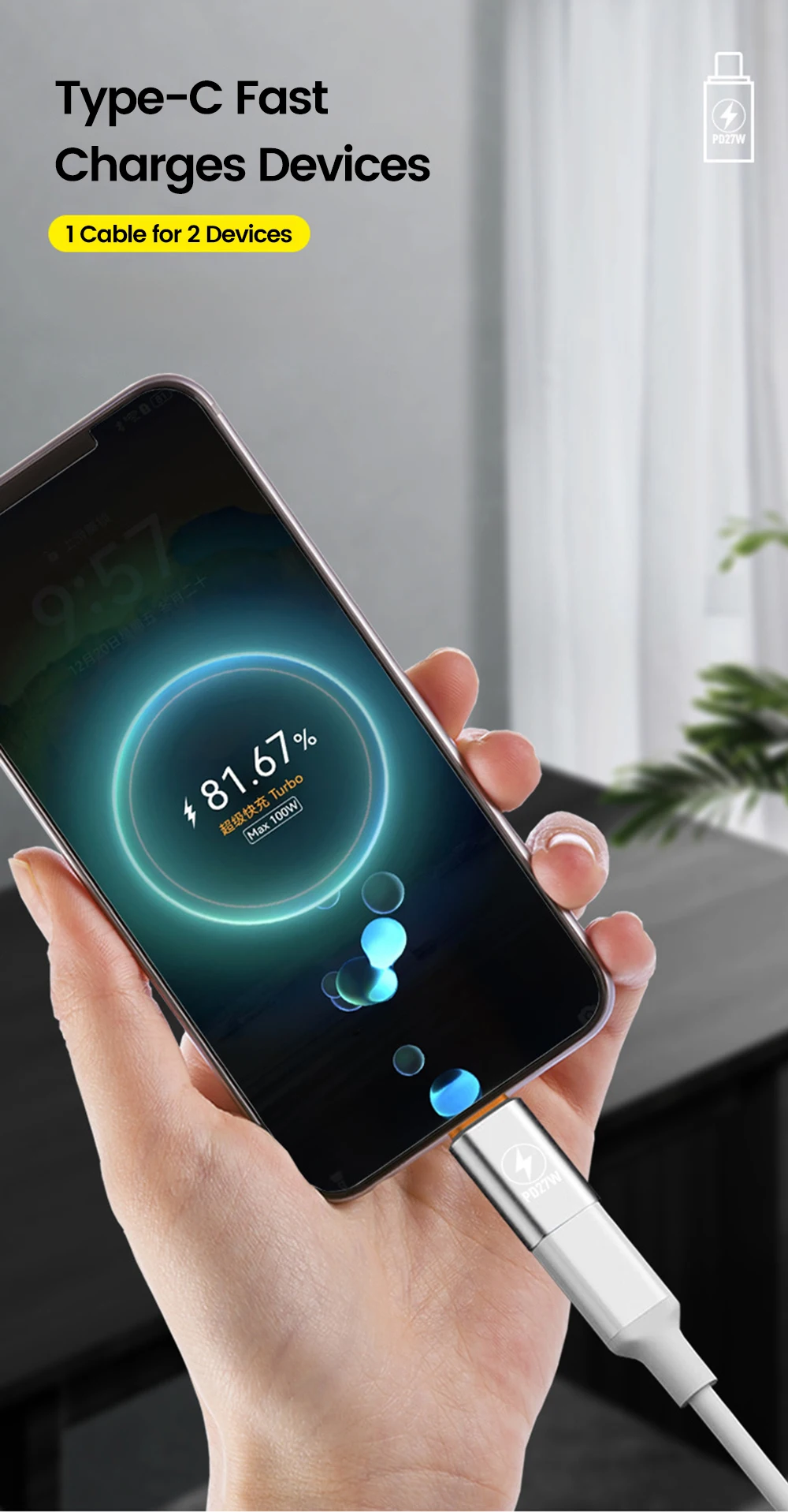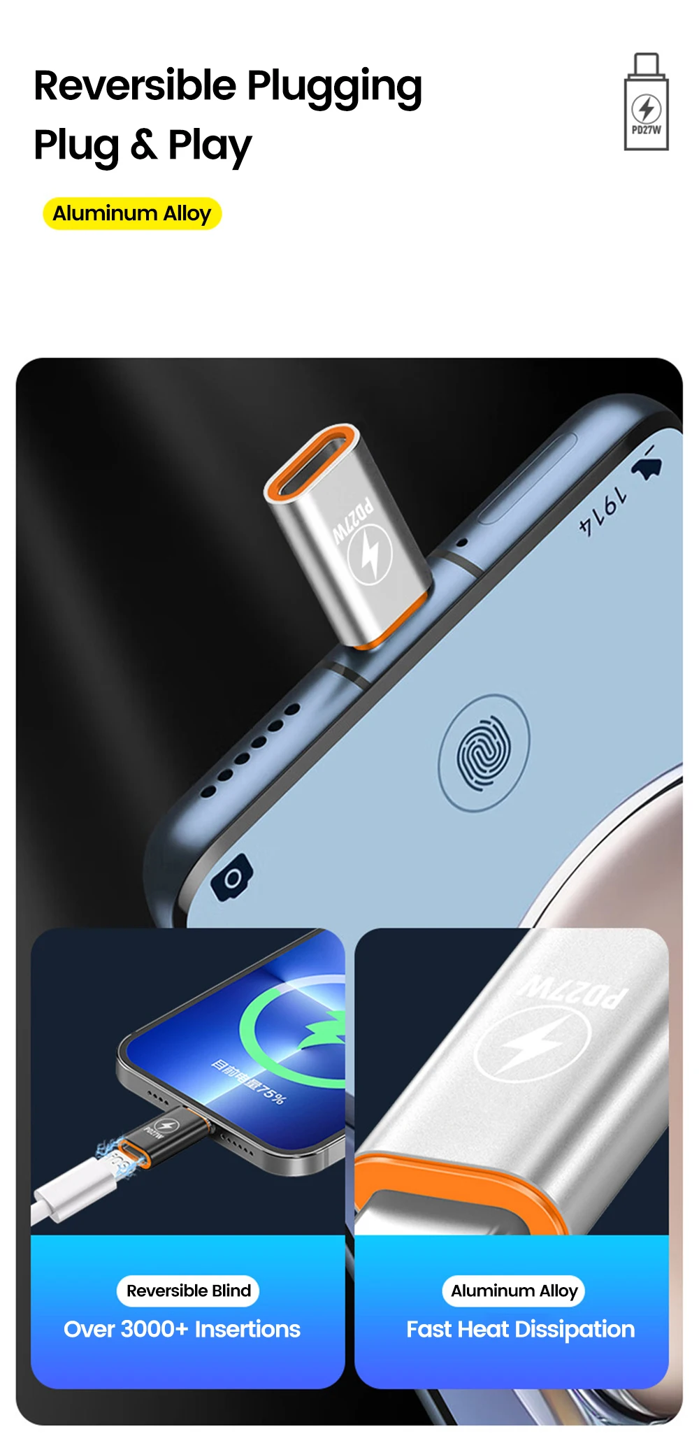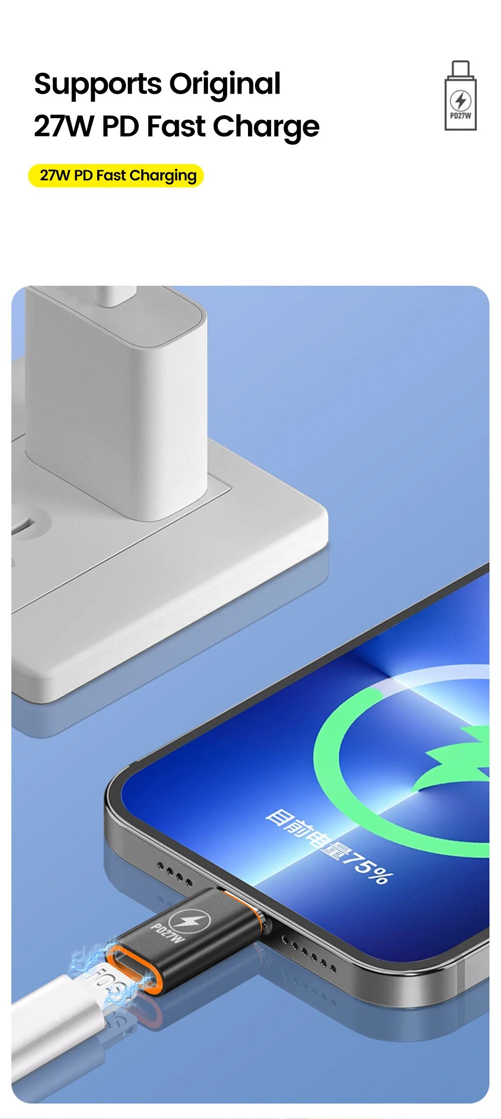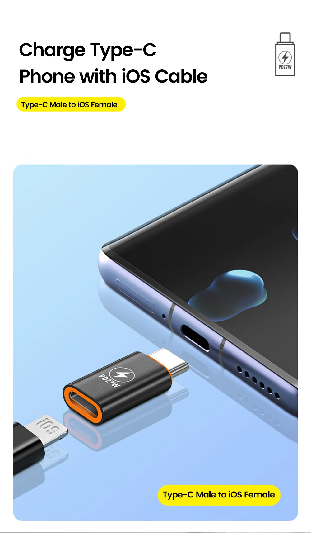 Adaptador PD27W tipo C a ios, transferencia de datos de carga rápida, convertidor tipo C macho a Lightning hembra para iphone 15 16 Samsung