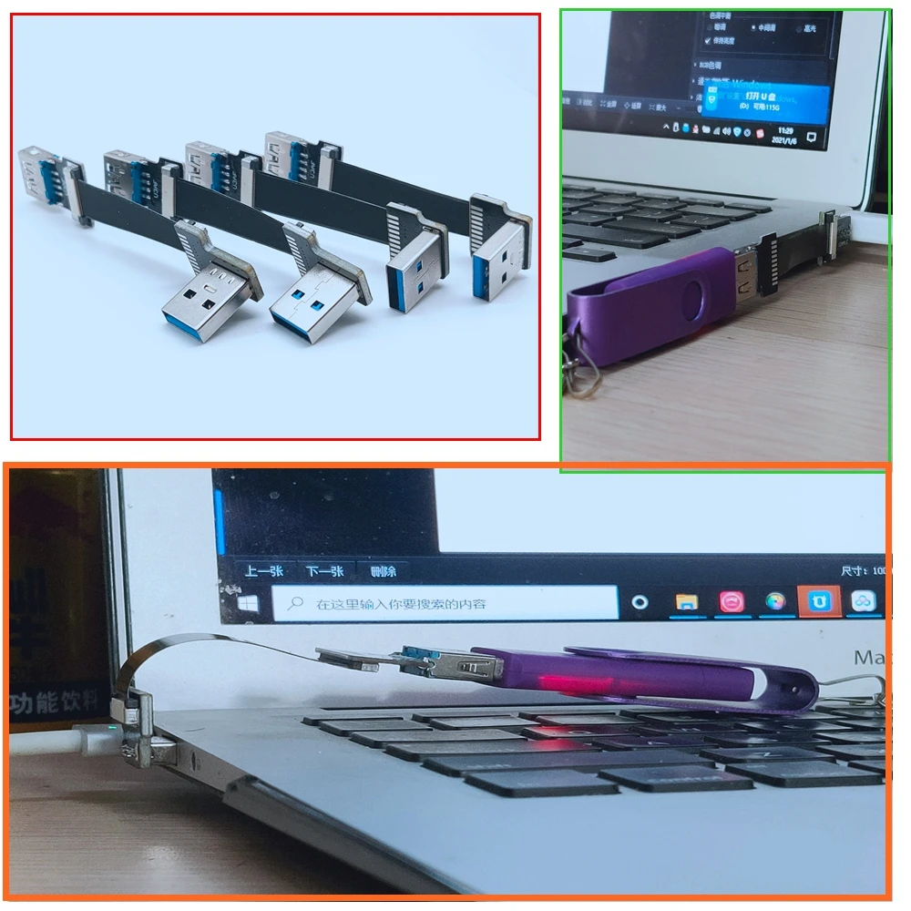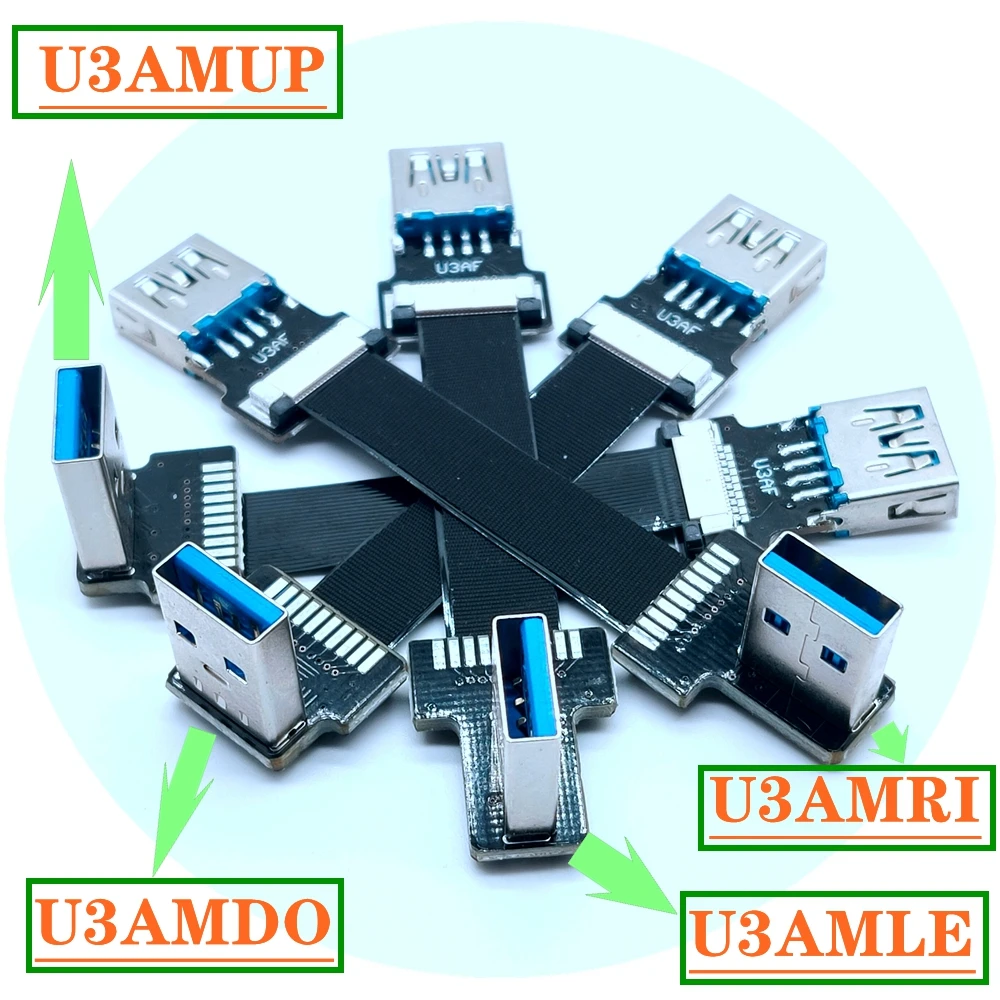 Adaptador plano USB 3.0 macho a hembra, codo FPC, cable de extensión USB, arriba y abajo, flexión izquierda y derecha 90 grados, adaptador USB