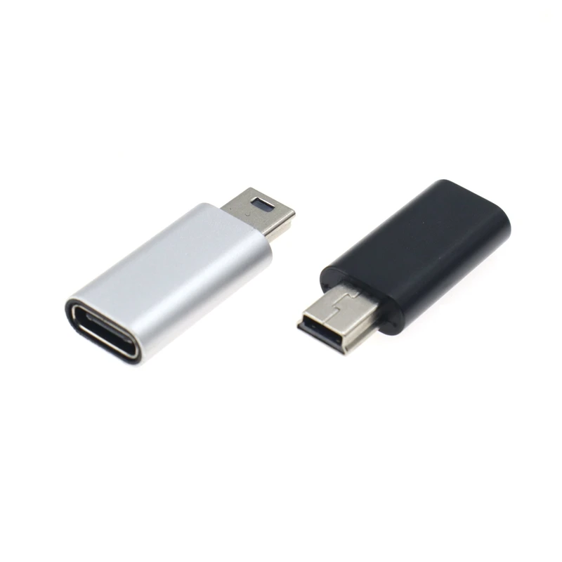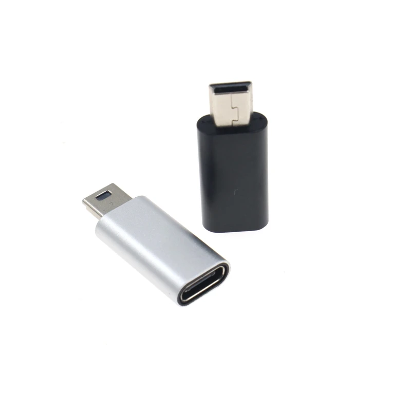Comprar Adaptador plateado USB C tipo C hembra a Mini USB macho 2,0, conector convertido para reproductores MP3 GoPro, cámara de salpicadero, cámara Digital GPS