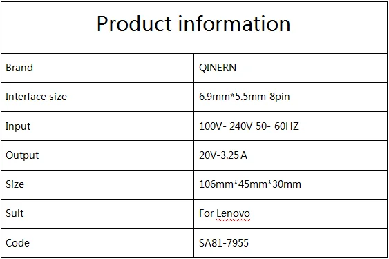 Such as 20V 3.25A 、19V 3.42A、19V 2.37A....