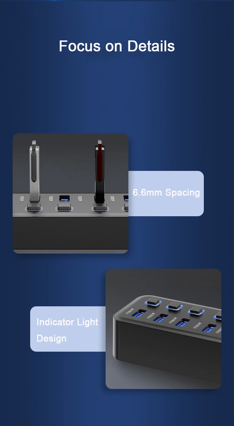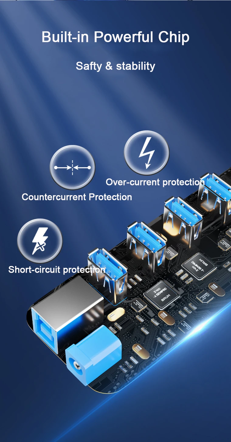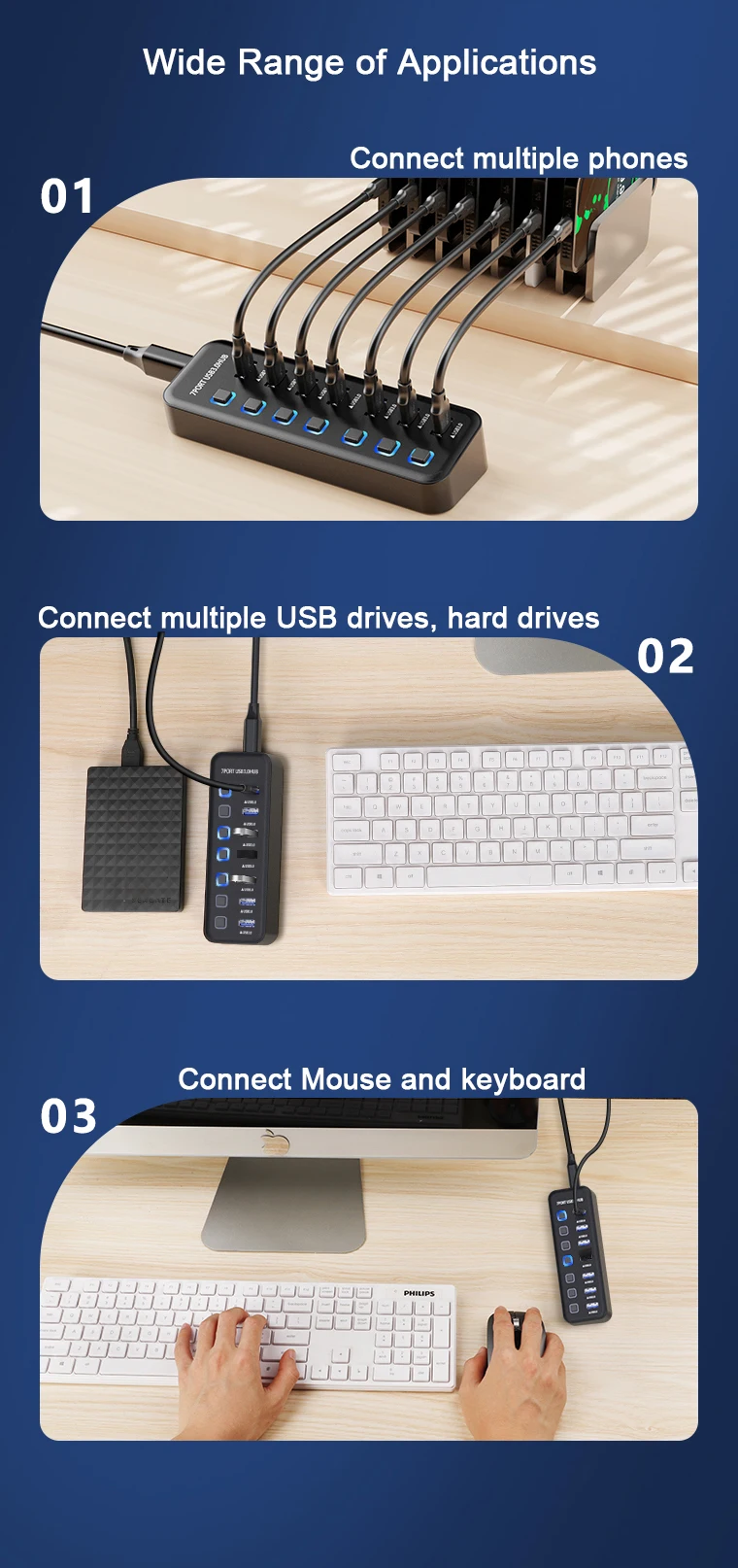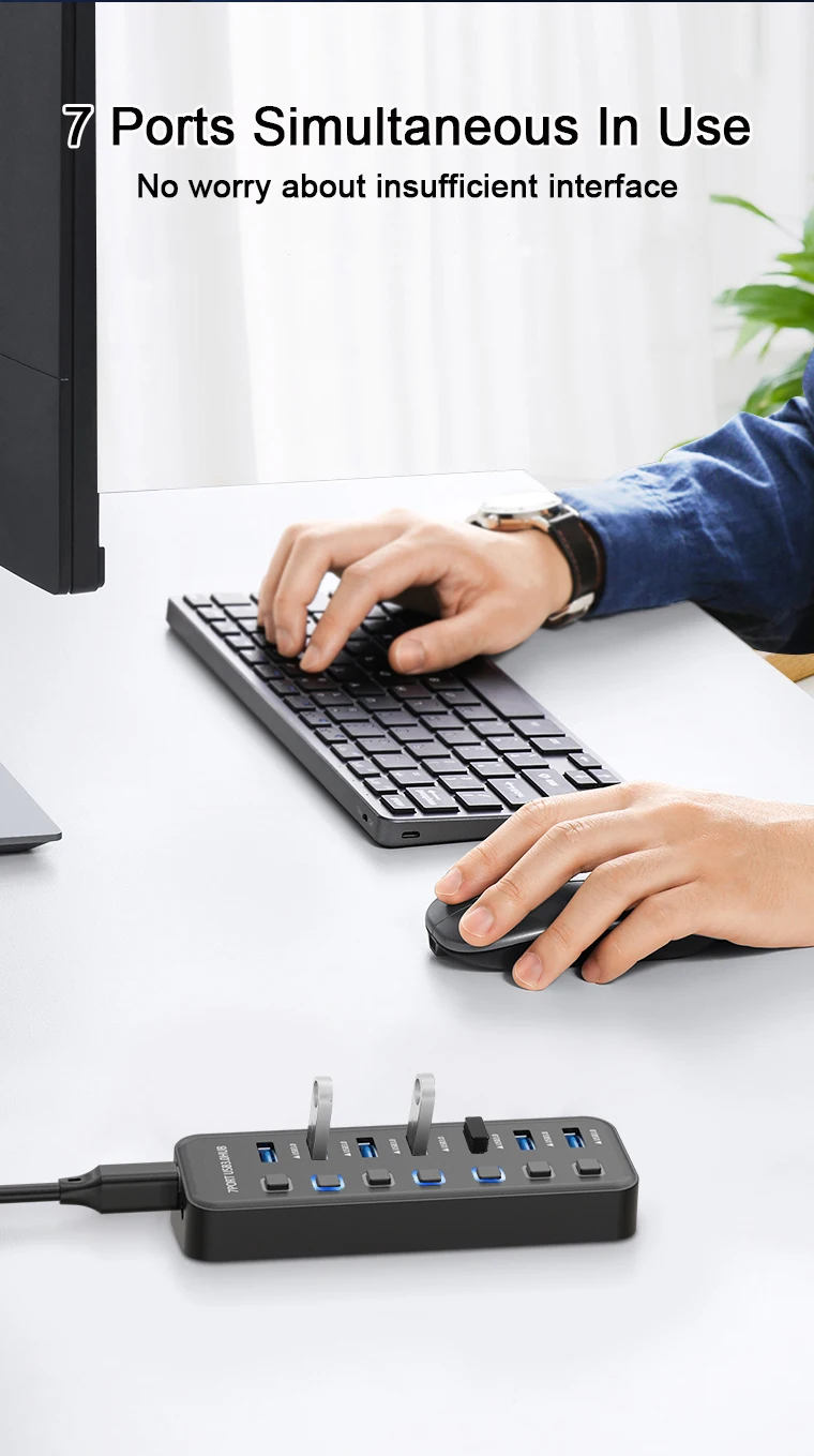 Adaptador de puerto de datos USB 3,0, 4 puertos, 7 puertos, 5Gbps, interruptor de encendido/apagado Individual de alta velocidad, divisor de extensión USB 3,0