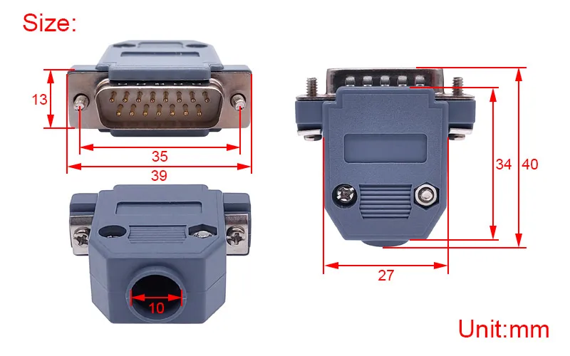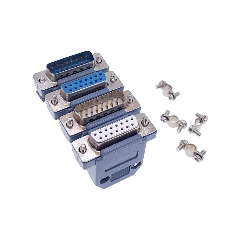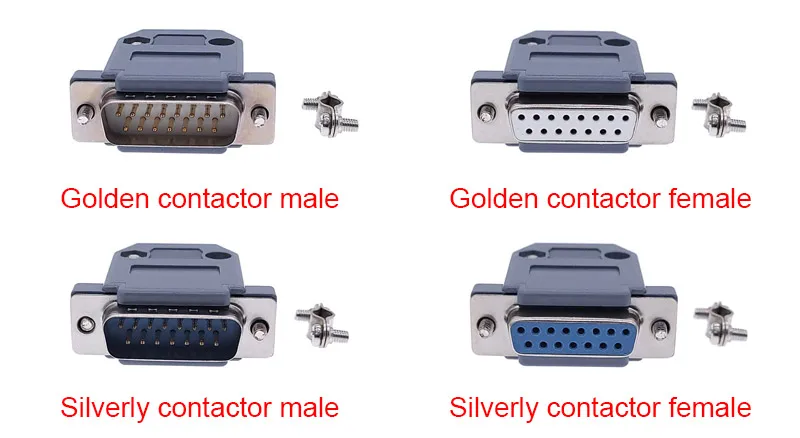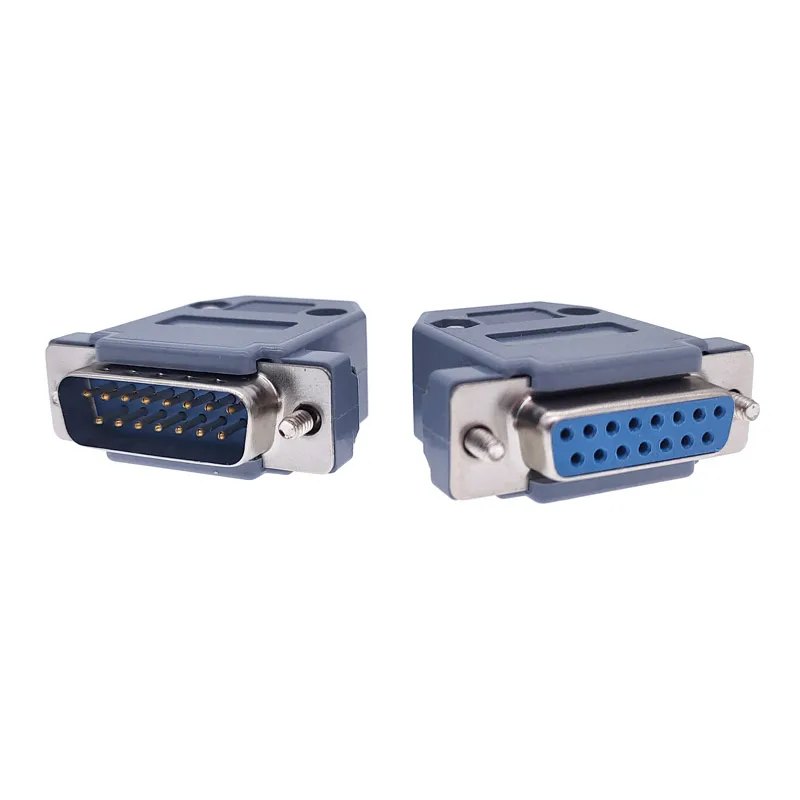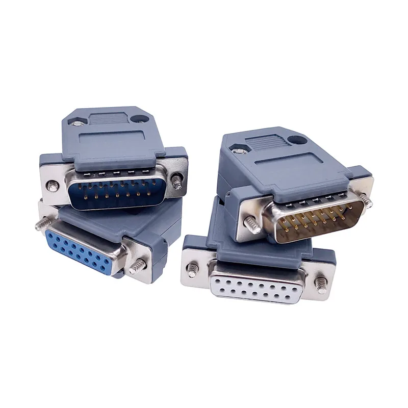 Comprar Adaptador de puerto de enchufe macho y hembra, conector DB15 de 2 filas, latón dorado plateado, D SUB DP15 + carcasa de plástico