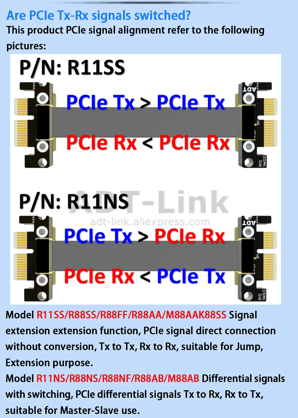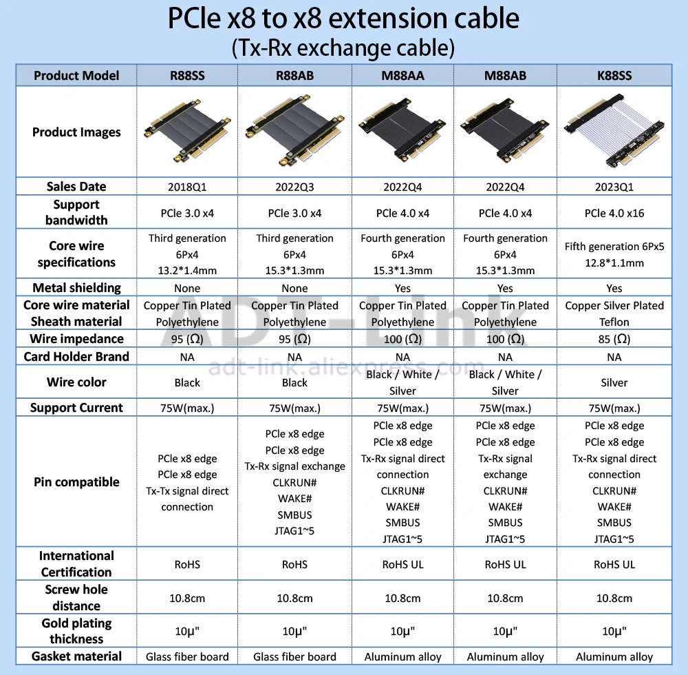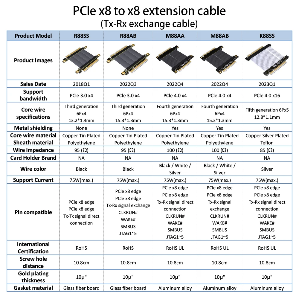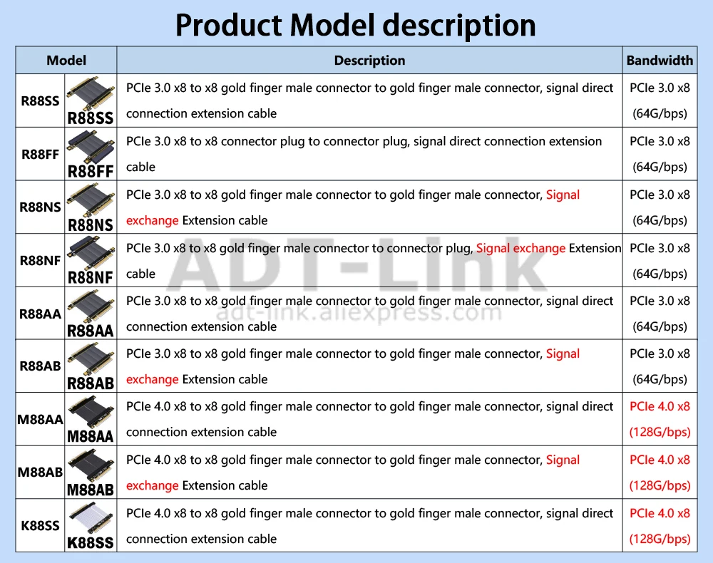 R88SS, R88FF, R88NS, R88NF, R88AA, R88AB (PCIe 3,0x8 velocidad completa, 64G/BPS (máx.))