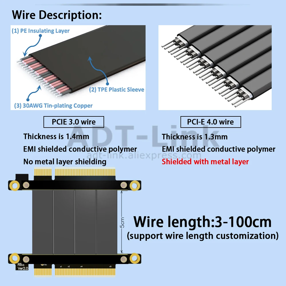 Comprar Adaptador de puerto de extensión PCI Express 4,0, Cable Flexible 8x de alta velocidad x8 a x8, servidor de tarjeta gráfica, Cable de puente de señal Tx Rx