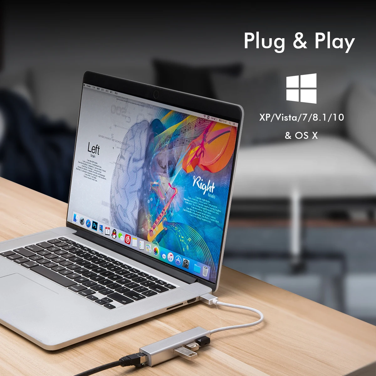 Comprar Adaptador de puerto HUB USB3.0 a RJ45 TypeC, 3 muelles con cable para PC, portátil, convertidor de ordenador, divisor de USB-C 3,1, puerto Lan Gigabit Ethernet