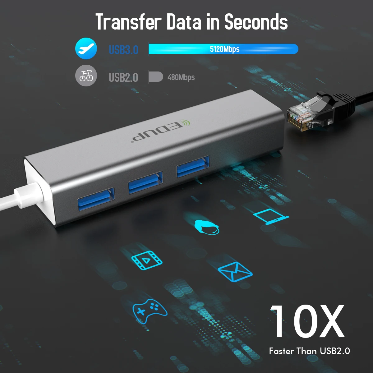 1.Adaptador USB3.0: 3xUSB3.0 1xRJ45