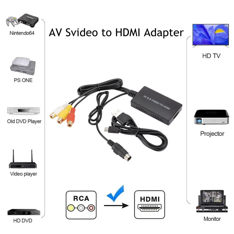 Comprar Adaptador PzzPss RCA /AV SVIDEO a HDMI Compatible con DVD HD TV STB Compatible con PS2/PS3,720P /1080P AV S-VIDEO convertidor de vídeo