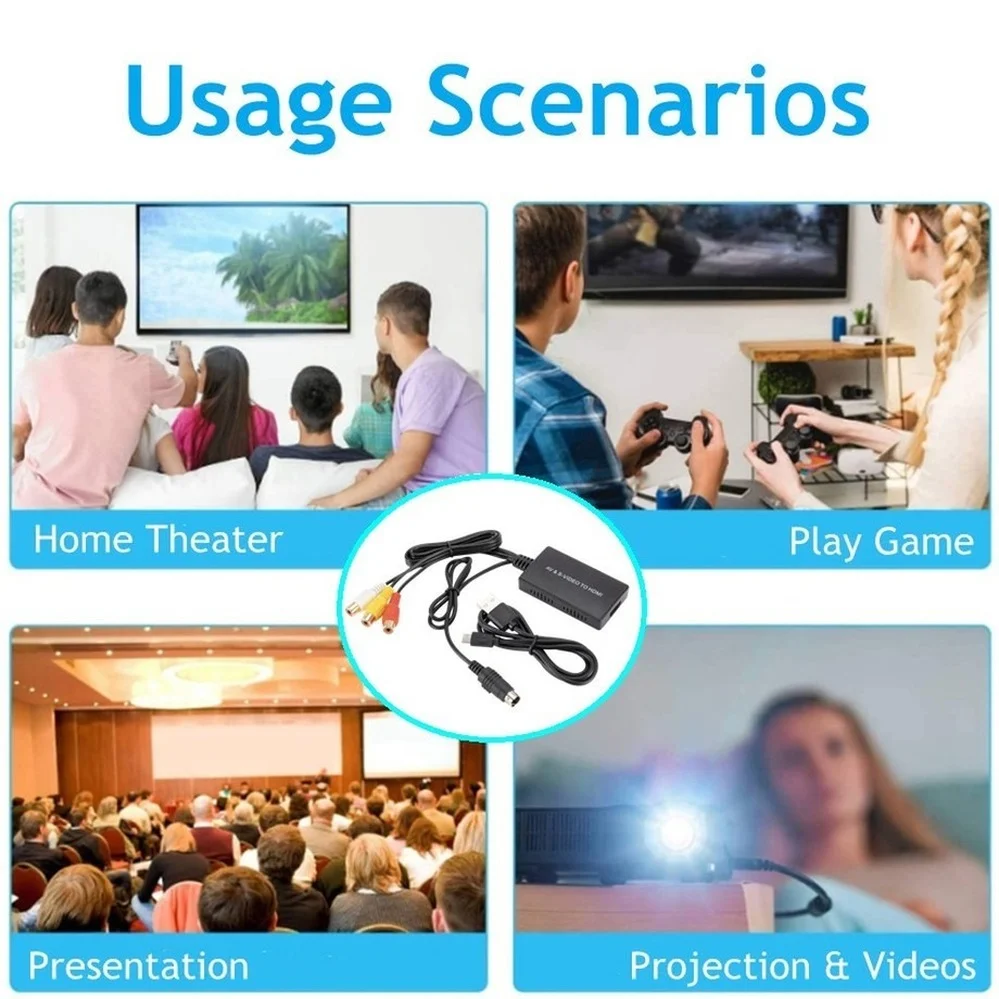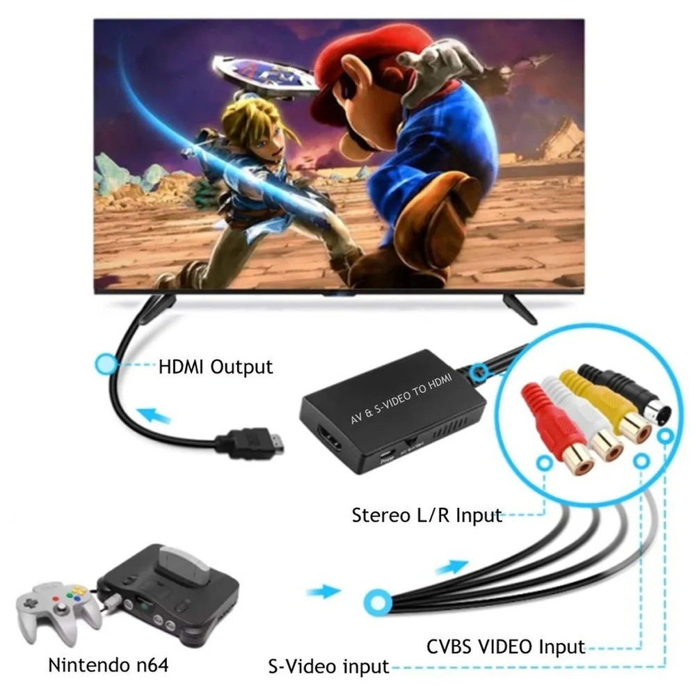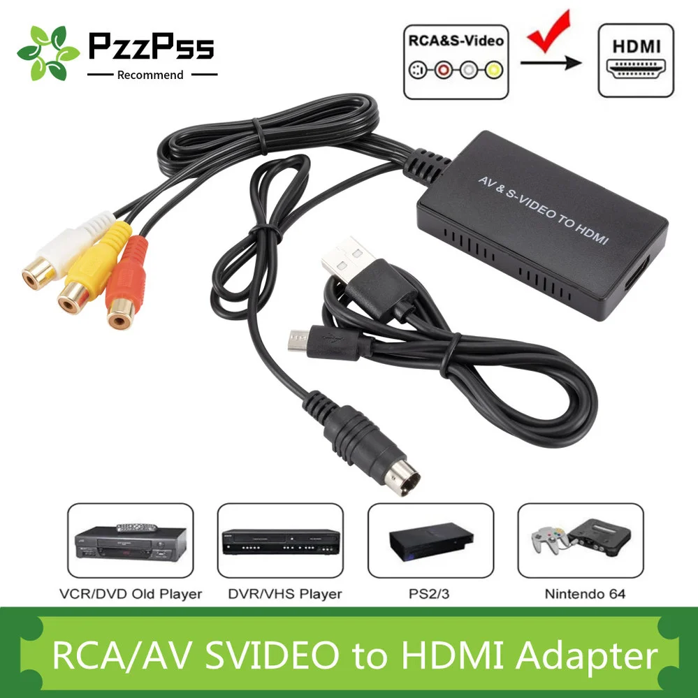 PzzPss RCA /AV SVIDEO to HDMI-Compatible Adapter For DVD HD TV STB Compatble With PS2/PS3,720P /1080P AV S-VIDEO Video Converter