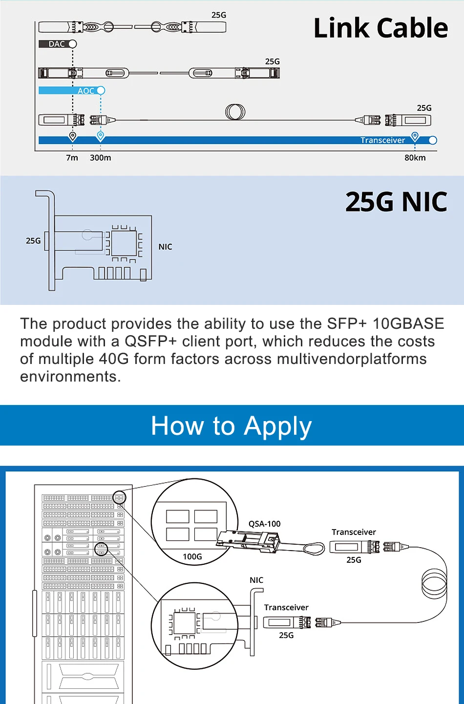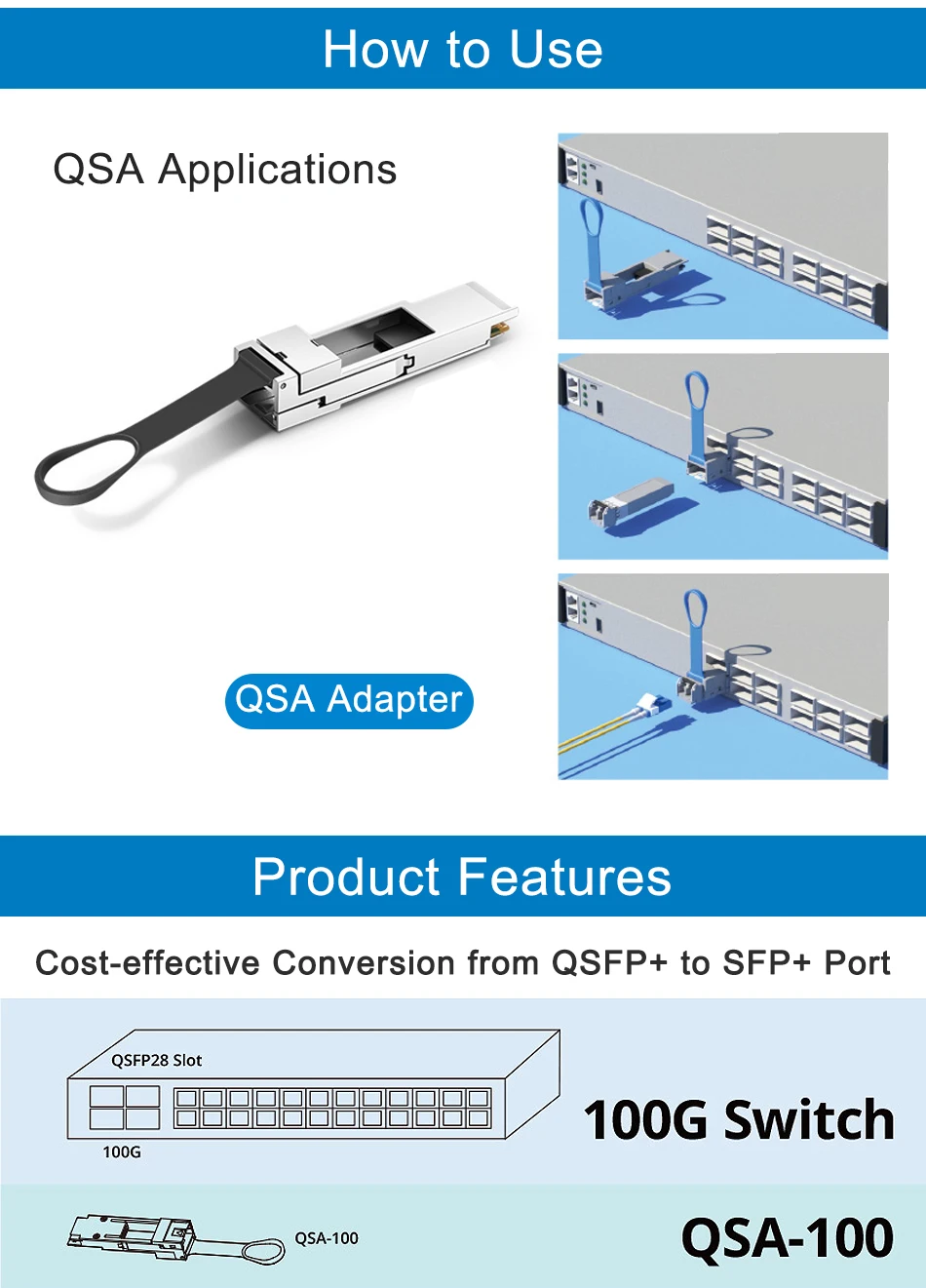 Adaptador QSFP + A SFP + QSAMódulo convertidor CVR/QSC