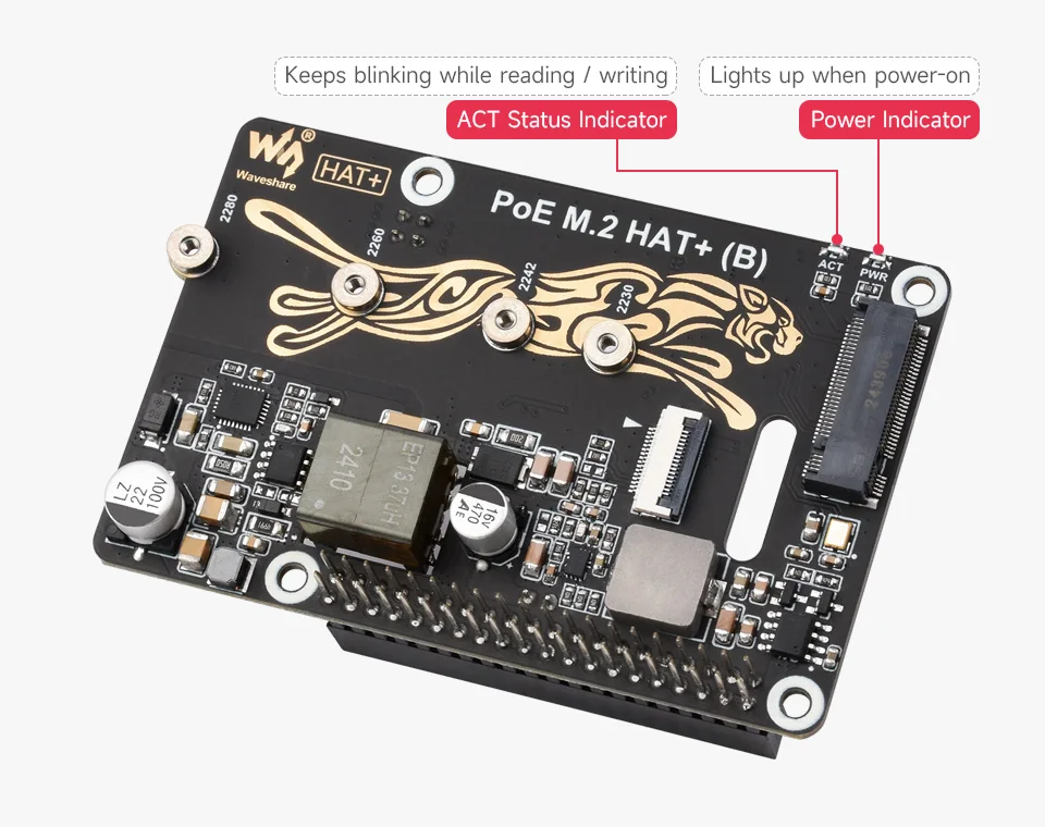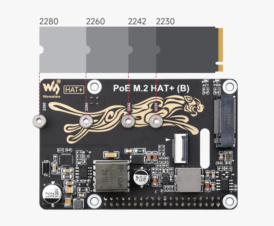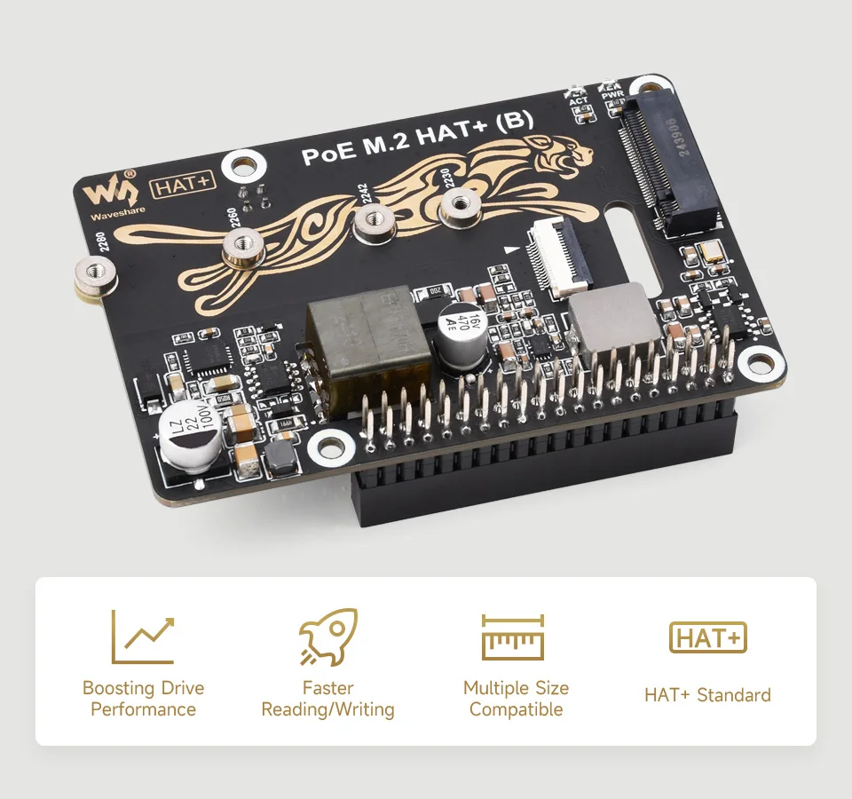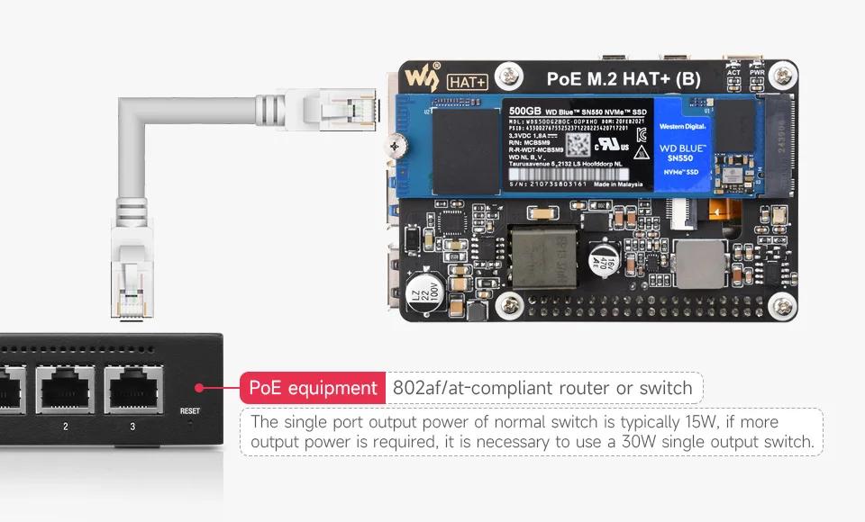 Comprar Adaptador Raspberry Pi 5 PCIe a M.2 con función PoE (B) Waveshare compatible con protocolo NVMe unidad de estado sólido M.2 de alta velocidad