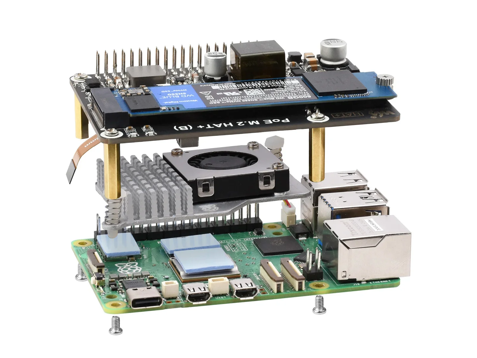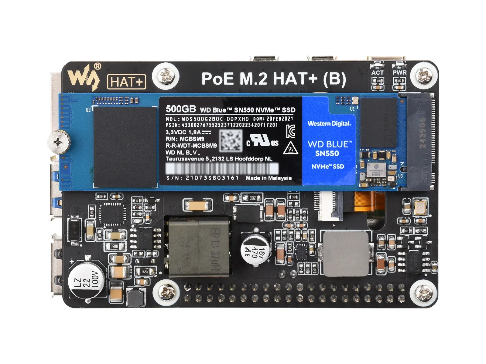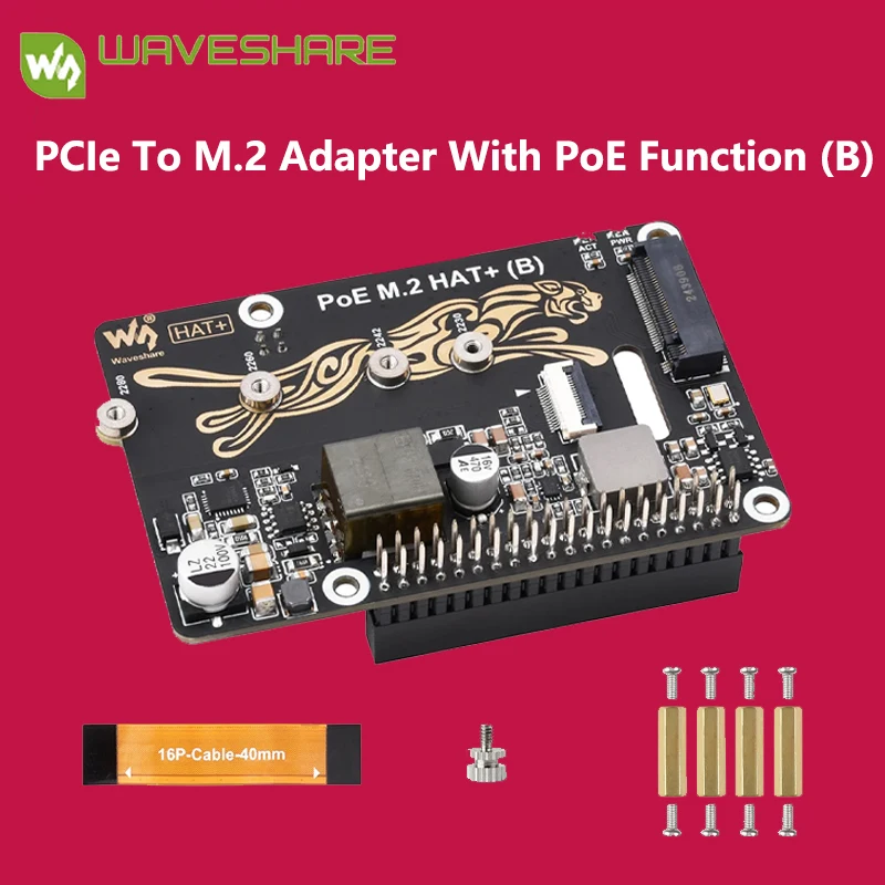 Comprar Adaptador Raspberry Pi 5 PCIe a M.2 con función PoE (B) Waveshare compatible con protocolo NVMe unidad de estado sólido M.2 de alta velocidad
