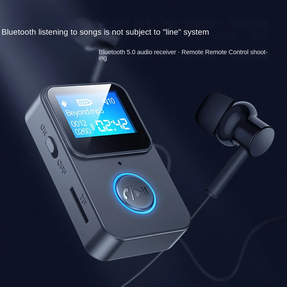 Comprar Adaptador receptor de Audio Bluetooth 5,0, reproductor MP3 con pantalla, compatible con Control remoto, fotografía