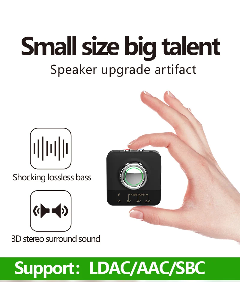 El Adaptador de audio compatible con Bluetooth cuenta con la transmisión de códec de audio LDAC, que ofrece una calidad de sonido de alta definición sin concesiones.