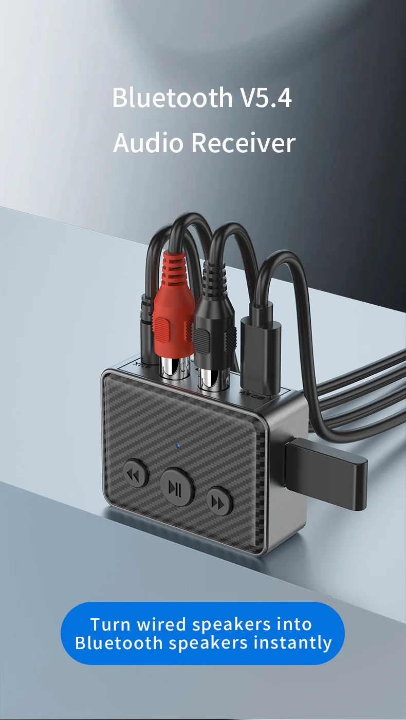 Adaptador receptor de Audio USB Bluetooth 5,4, música estéreo inalámbrica, AUX RCA de 3,5mm, compatible con reproducción de disco en U para amplificador de altavoz de escritorio